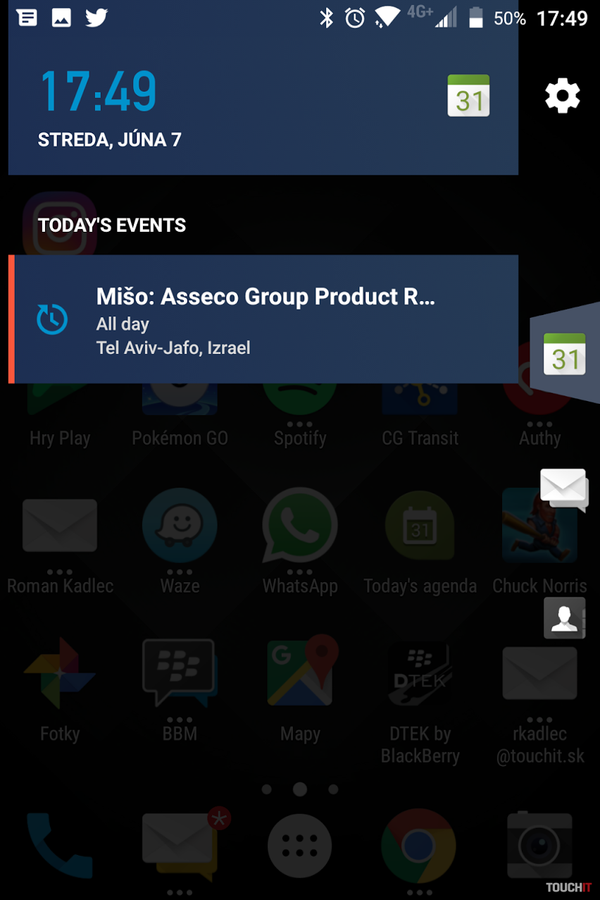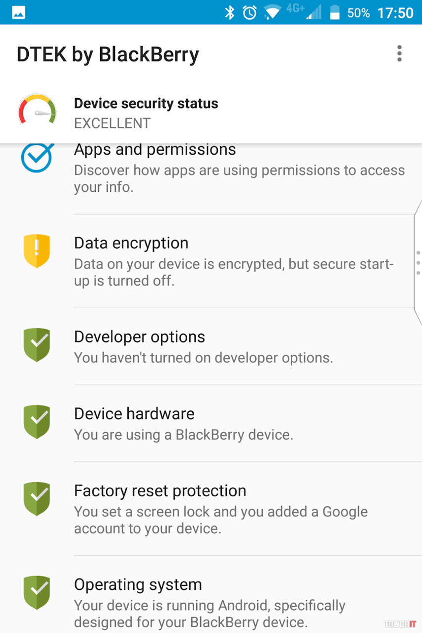 Extra softvér od BlackBerryDruhým hlavným lákadlom, hneď po hardvérovej klávesnici, je rozšírenie systému Android o softvér od BlackBerry. Základom aplikácií ako email, kalendár, kontakty atď. je tzv. BlackBerry Hub, ktorý si môžete stiahnuť aj do iných Android zariadení. Ak sa vám bude aplikácia páčiť, môžete ju za mesačný poplatok používať so všetkými funkciami. V prípade BlackBerry KEYone je táto aplikácia samozrejme súčasťou telefónu a nič neplatíte. Okrem nej nájdete v základnej výbave aj správcu hesiel, rádio, pripomienkovač, poznámky atď. Je fajn, že predinštalovaného softvéru nie je veľa a ak niečo BlackBerry predinštalovalo nad rámec Google služieb, sú to zväčša užitočné aplikácie. Vo výbave je aj špecialita menom Privacy Shade, ktorá skomplikuje ostatným ľuďom pozerať sa vám do displeja, napr. v MHD. Za zmienku stojí aplikácia DTEK. Ide o bezpečnostnú aplikáciu, ktorá pomôže s nastavením vášho zariadenia a upozorní na prípadné bezpečnostné riziká. Kvôli tejto aplikácii a prísľubu častých bezpečnostných aktualizácií BlackBerry vyhlasuje, že KEYone je „najbezpečnejší Android telefón na svete“.