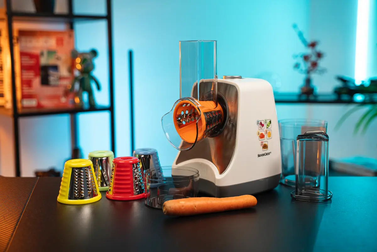Elektrické strúhadlo Silvercrest SGR 150 E1 je multifunkčný pomocník, ktorý uľahčí prípravu zeleniny, syrov, orechov ale aj ovocia. Najmä ak ide o prípravu väčšieho množstva, napríklad do plniek koláčov či pri príprave zemiakových placiek.