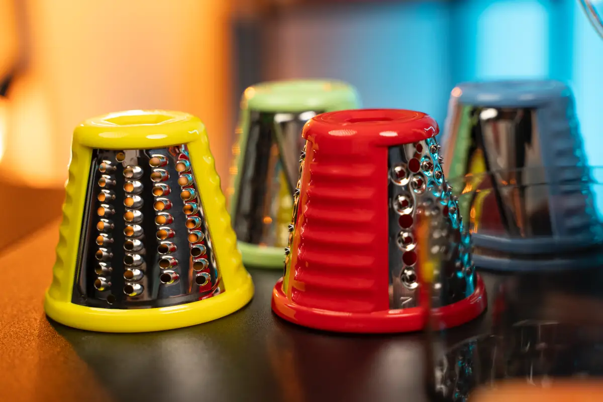 Strúhadlo je kompaktné a veľmi ľahké, má dve gumové protišmykové nožičky a dve gumenné prísavky, aby dobre držalo na mieste. Nezaberie veľa miesta na pracovnej doske no ani pri skladovaní v kuchynskej linke. Výmena rezacích valcov je jednoduchá, vďaka praktickému zacvakávaciemu mechanizmu. Obsahuje až 5 nadstavcov, ktoré sú v plastovej tube umiestnené priamo v strúhadle: rezací bubon (1x jemný a 1x hrubý), strúhací bubon (1x jemný a 1x hrubý), škrabací bubon. Nastrúhané suroviny prakticky padajú priamo do misky.