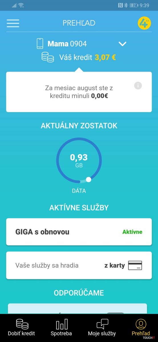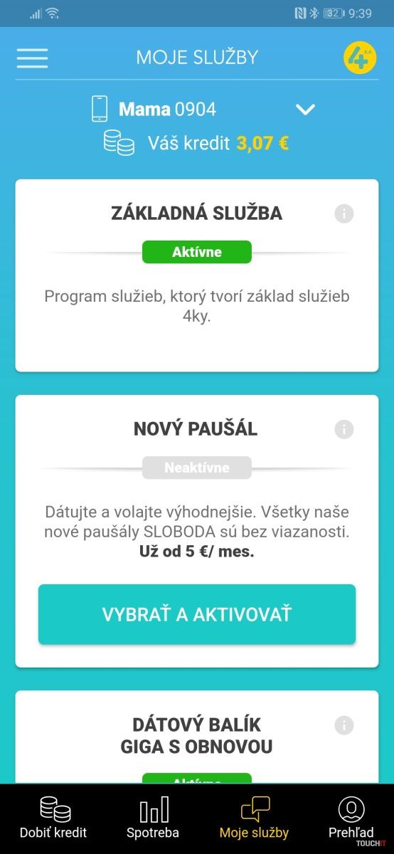 Aplikácia Moja 4ka je užitočný pomocník, s ktorým máte svoje služby pod kontrolou a viete ich podľa potreby meniť. Obrázok si môžete zväčšiť kliknutím naň