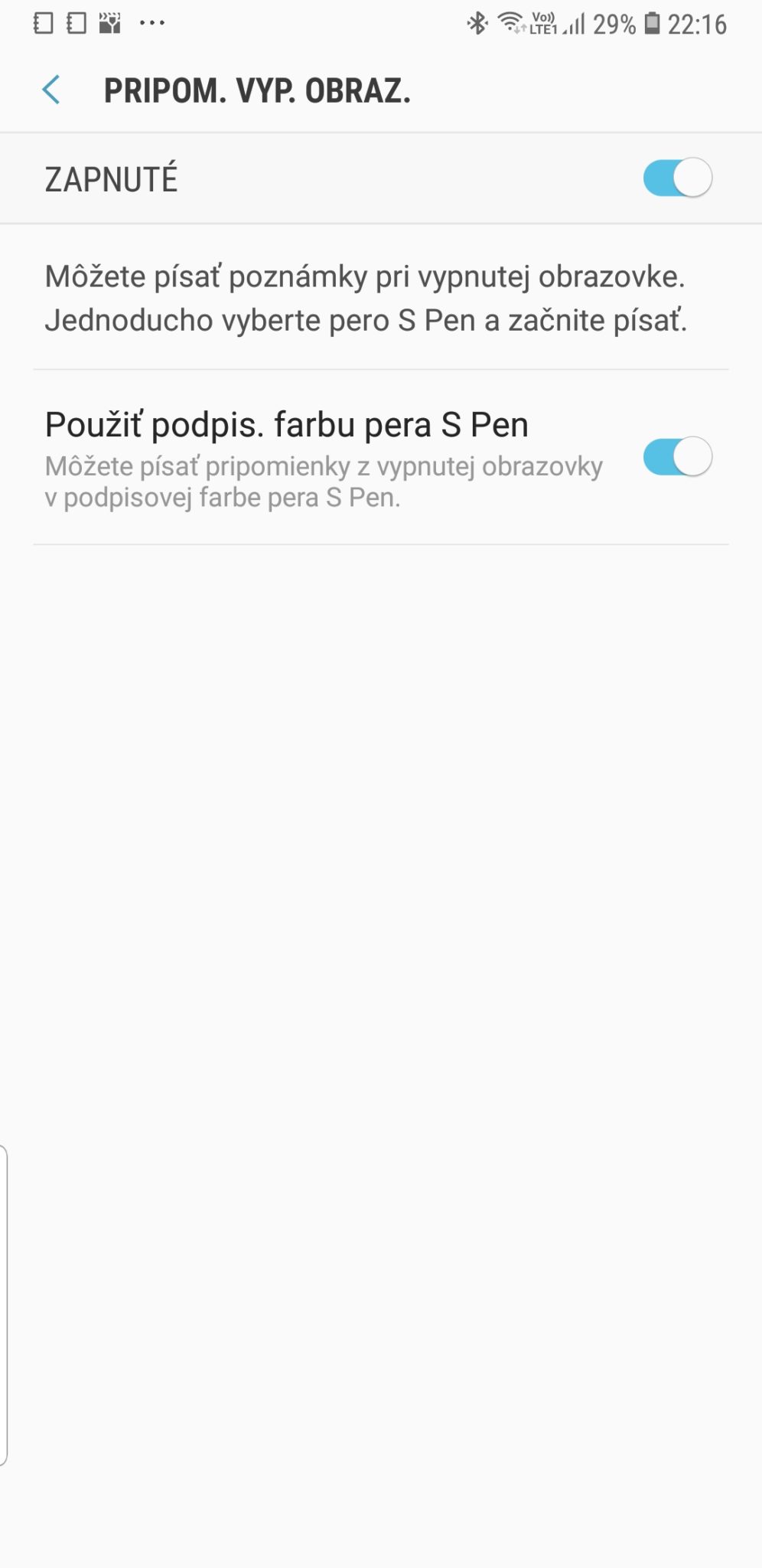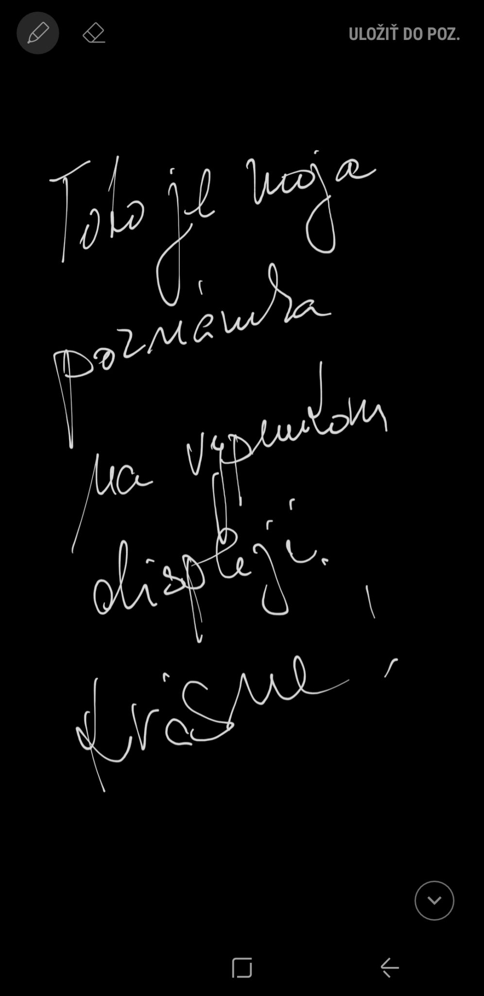 Tak toto je super funkcia. Vyberiete pri vypnutom displeji pero zo šachty a nech môžete začať písať po displeji. Ako píšete, počujete ako keby ste písali písacím perom na skutočný papier. To je naozaj realistický efekt. To čo napíšete môžete veľmi ľahko uložiť medzi ostatné poznámky a neskôr sa k nej vrátiť. Z nášho pohľadu neexistuje rýchlejší spôsob ako si napr. napísať čo treba kúpiť v obchode, telefónne číslo kontaktu alebo veci, ktoré máte ešte vybaviť. V nastaveniach si môžete vybrať, či sa niečo takéto má po vytiahnutí pera realizovať alebo nie a či má byť farba takto napísaného textu rovnaká ako je farba pera. Inými slovami, ak máte žlté pero, budete písať žltou farbou. Čierne pero píše na bielo.