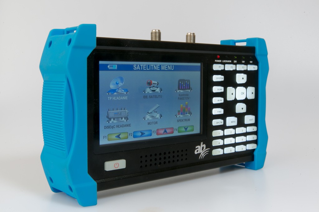 Základnou časťou predného panelu je veľký, až 5-palcový farebný displej, pri ktorom môžete nastaviť jas, kontrast a sýtosť farieb. Tak dosiahnete, že údaje na displeji vidíte aj počas jasnejšieho dňa. Ovládacie tlačidlá sú pogumované a podsvietené, je teda možnosť pohodlne ovládať tento prístroj aj za šera. Na zabudovanú batériu (Li-oN 2 × 2700mAh) sme ho mohli používať okolo 3 hodín, rovnako nabíjanie úplne prázdnej batérie trvalo 3 hodiny. Prístroj sa dá nabíjať (alebo prevádzkovať) s pripojením na elektrickú sieť alebo do adaptéra na cigaretový zapaľovač v automobile. Na hornej strane sa nachádza pripojenie na satelitný a terestriálny/káblový signál (oba sa pripájajú cez F konektor) , je tu aj napojenie na HDMI, USB 2.0 a pripojenie externého napájacieho adaptéra. Cez HDMI port sa dá zobraziť výstup na väčšom displeji. USB port slúži na uschovanie niektorých výsledkov pri meraní, nahrávanie prijatého TV vysielania vo formáte .ts a aktualizáciu firmware.