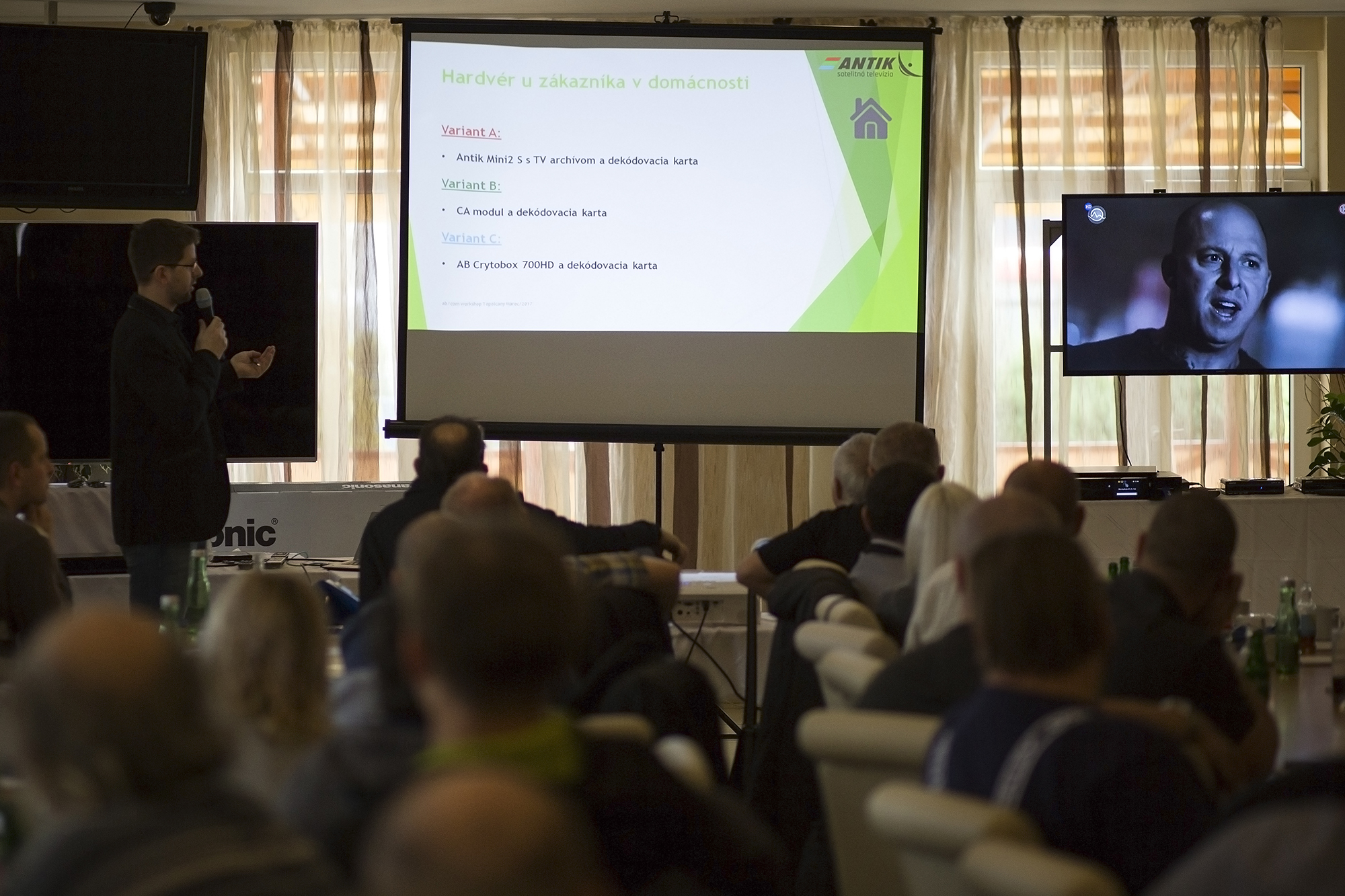 Nasledovala časť zameraná na nové Vu+ prijímače. Podrobnejšie sa preberal prijímač Vu+ UNO 4K a hlavne Vu+ ULTIMO 4K. Prítomní sa dozvedeli užitočné funkcie a nastavenia v alternatívnych softvéroch, napr. ako nastaviť zdieľanie tunera z jedného prijímača do druhého Vu+ prijímača v tej istej domácnosti, pričom druhý prijímač nemusí vôbec mať pripojený satelitný signál a je len pripojený do tej istej počítačovej siete. Zástupcovia firmy AB-COM ukazovali, ako nahrávať program z VU+ UNO 4K, ku ktorému nie je pripojený žiadny HDD do prijímača Vu+ ULTIMO 4K, ktorý je vybavený interným pevným diskom. Posledná časť workshopu patrila spoločnosti ANTIK, ktorá prijala pozvanie od firmy AB-COM. Prezentovali satelitnú televíziu ANTIK SAT ako aj internetové služby (archív, live stream atď.). Naviac zaujalo prítomných to, že karty ANTIK na príjem satelitnej televízie už nie sú párované s vybraným typom prijímača a dajú sa použiť aj v prijímačoch AB CryptoBox či Vu+ bez nutnosti použitia CAM modulu. Takže ak používatelia majú napr. zariadenie AB CryptoBox 700HD a chcú zmeniť poskytovateľa satelitnej televízie z ľubovoľného dôvodu, tak nemusia kupovať nový prijímač, ale stačí si kúpiť už len ANTIK kartu. Toto vyvolalo medzi účastníkmi konferencie veľmi pozitívne reakcie. Viac o prijímači VU+ ULTIMO 4K a Vu+ UNO 4KPodobné články