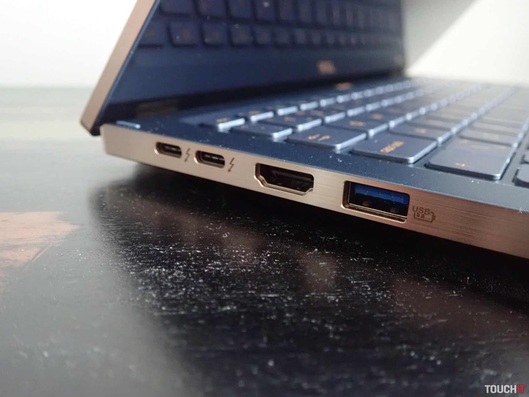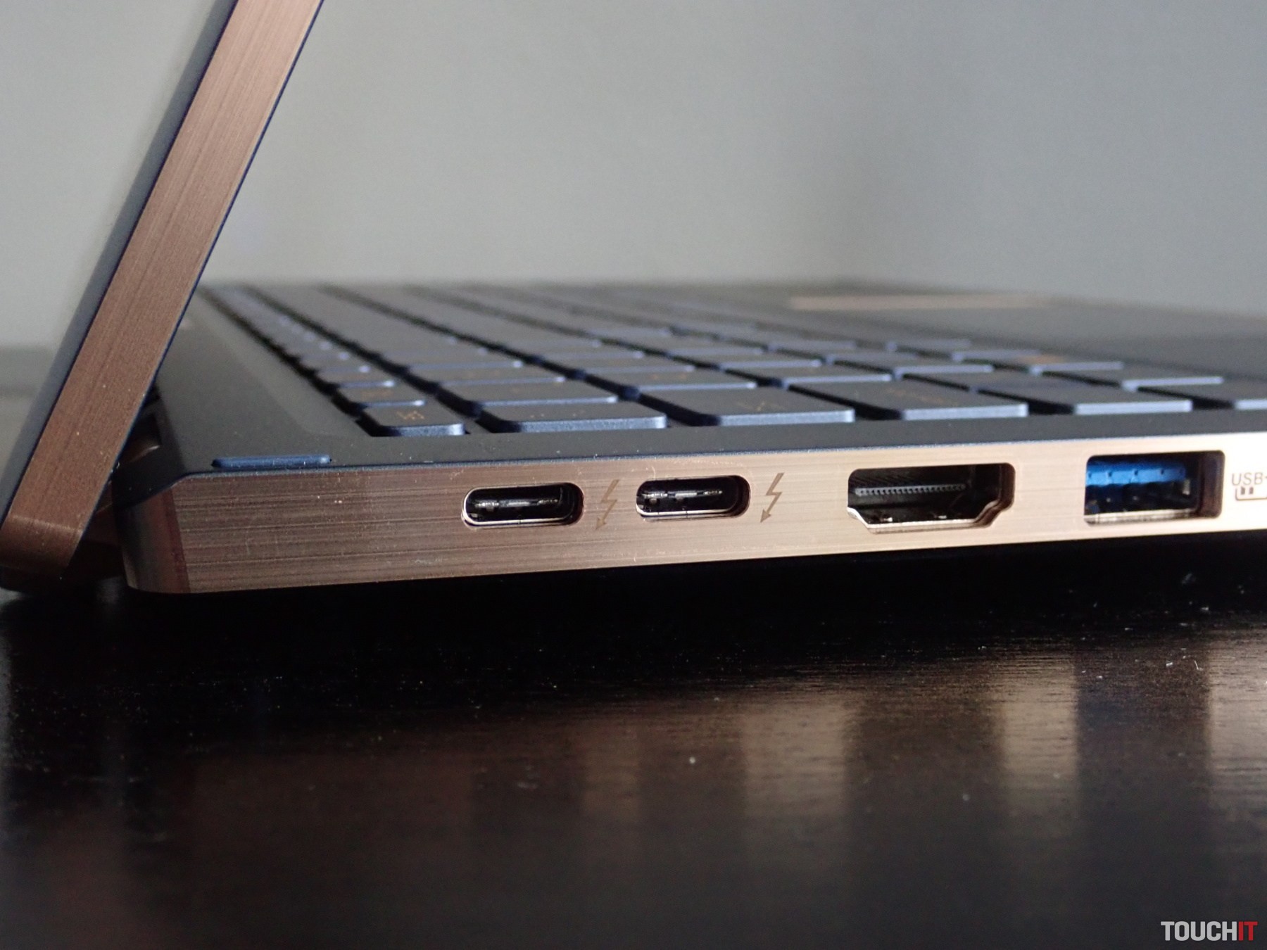 Súčasťou balenia je aj adaptér s koncovkou USB-C a podporujú napájanie až do 100 W. Ide o plnohodnotné porty vhodné na pripojenie monitora alebo zariadení kompatibilných s Thubnderbolt 4.