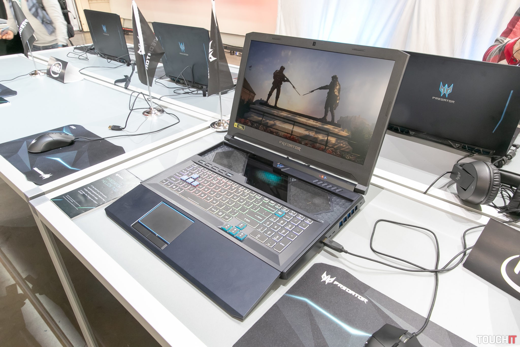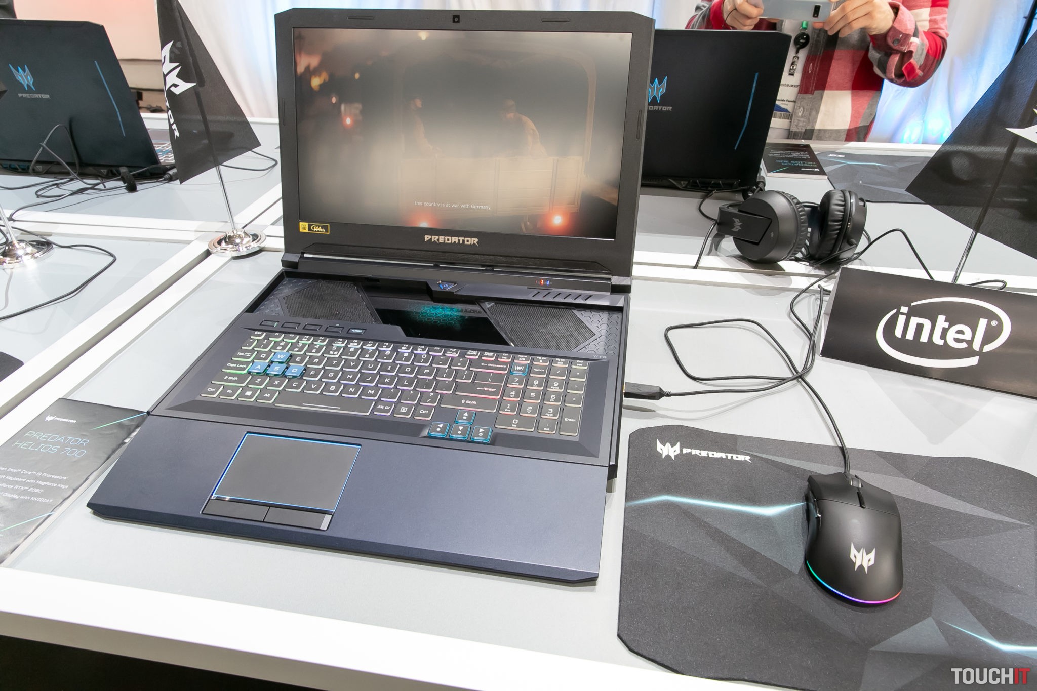 Asi najväčšiu pozornosť na predstavení pútal herný notebook Acer Predator Helios 700, ktorý má netradične vysúvateľnú klávesnicu. Vo svojom vnútri má procesor Intel Core i9, deviatej generácie, je tu grafická kata NVIDIA GeForce RTX 2080 a tiež aj špeciálna mechanická klávesnica s tlačidlami, ktorých sila prítlaku sa dá používateľsky nastavovať.