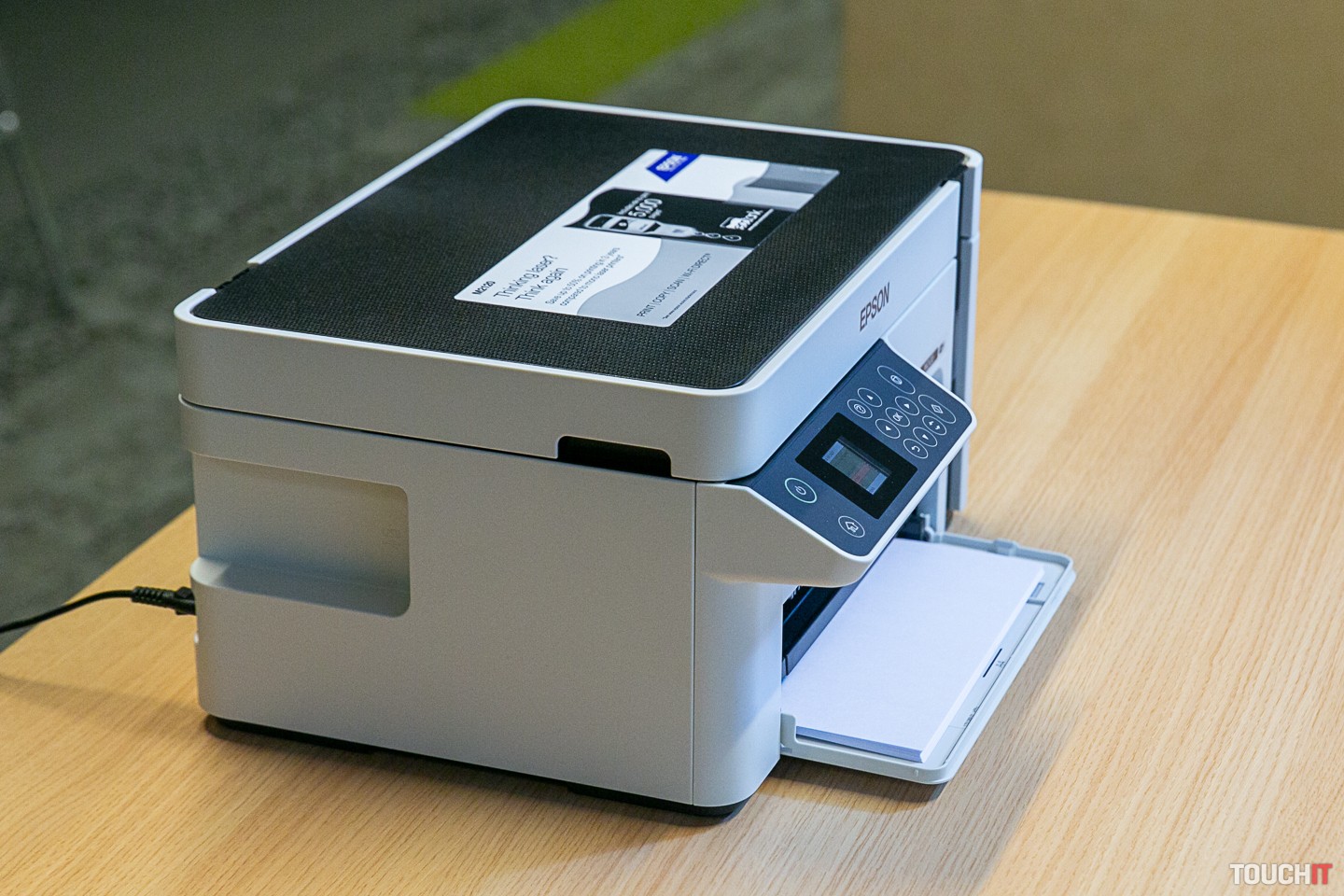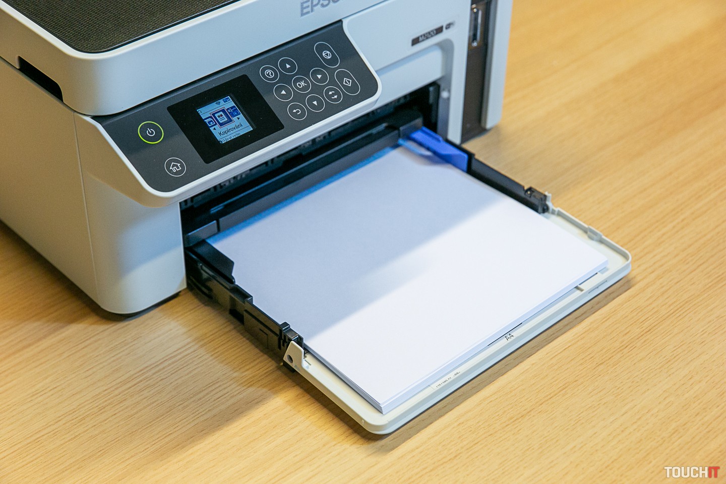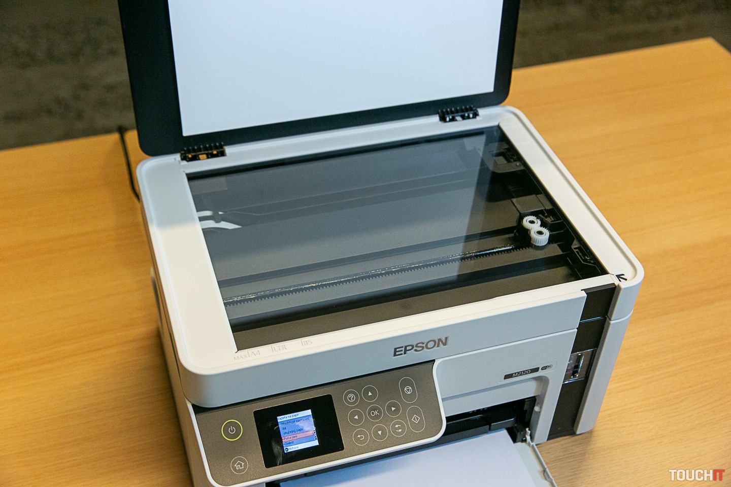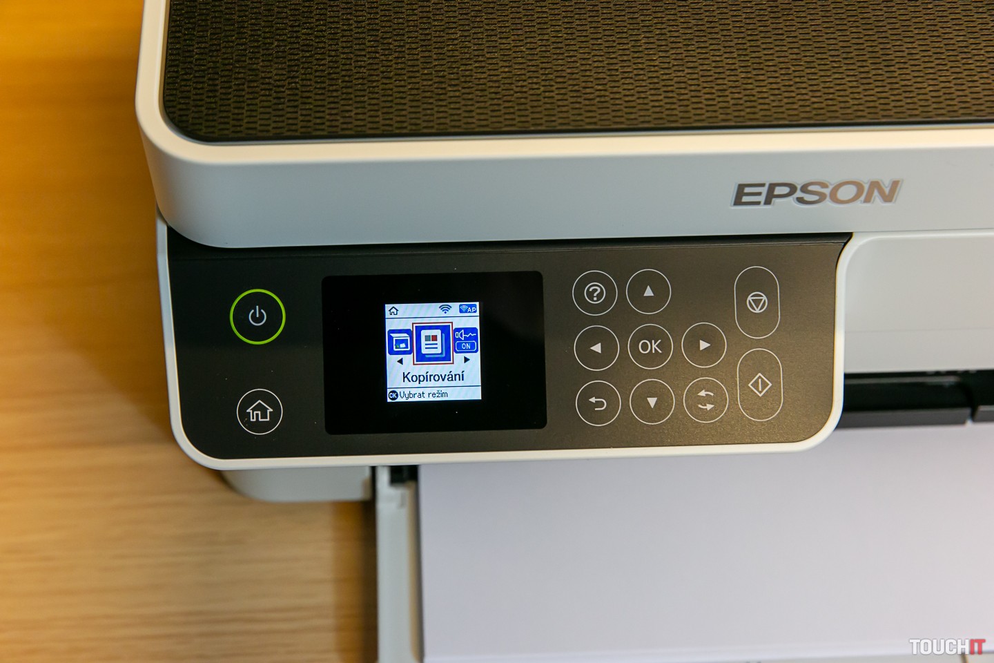 Ako sme spomenuli, ide o tankové náplne, teda dostávate vlastne tubu, z ktorej atrament vytláčate do zásobníka. Atrament dlhodobo (mesiace) odoláva voči zaschnutiu. Mesačne môžete vytlačiť až 15 000 strán, prvá strana je vytlačená za 8 sekúnd, nie je tu totiž žiadne zohrievanie. Táto tlačiareň je v z hľadiska nákladov na vlastníctvo aj nákladov na jej správu ďaleko výhodnejšia, ako je laserová technológia. Týka sa to aj spotreby elektrickej energie. Vstupný podávač má kapacitu 150 hárkov papiera. Elektrickú spotrebu počas tlače sme namerali 15,6 W. Na ovládanie slúži farebný LCD displej s uhlopriečkou 1,44 palca. Displej nie je dotykový, ovládate celý systém pomocou tlačidiel alebo po pripojení na Wi-Fi sieť z mobilu. Tlačiť samozrejme môžete aj z notebooku či počítača cez Wi-Fi sieť a ak sa nedá inak, tak aj z USB 2.0 káblu (tzv. veľký konektor). Ten však nie je v dodávke multifunkcie a na dnešnú dobu je to už trochu raritný kúsok.