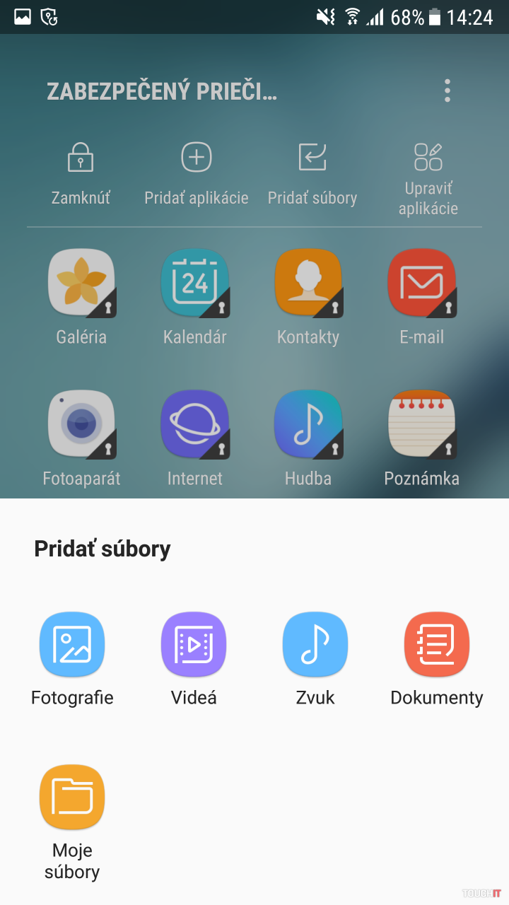 Nové prostredie sa zobrazí automaticky a teraz je ten správny čas urobiť úvodné nastavenie. Pridať môžete aplikácie, ktoré už máte v systéme nainštalované alebo ďalšie z Google Play či obchodu Galay Apps. Ďalej je tu možnosť pridať súbory, ktoré už v smartfóne máte. Ide o fotografie, videá, zvukové súbory, dokumenty alebo ďalší obsah zobrazený cez integrovaného správcu súborov. Všetky takto pridané aplikácie bude treba nastaviť odznova. Je to logické, pretože sú nezávislé na pôvodných a teda úplne oddelené. Môžete sa rozhodnúť či povedzme fotografie do chráneného priestoru skopírujete alebo presuniete.