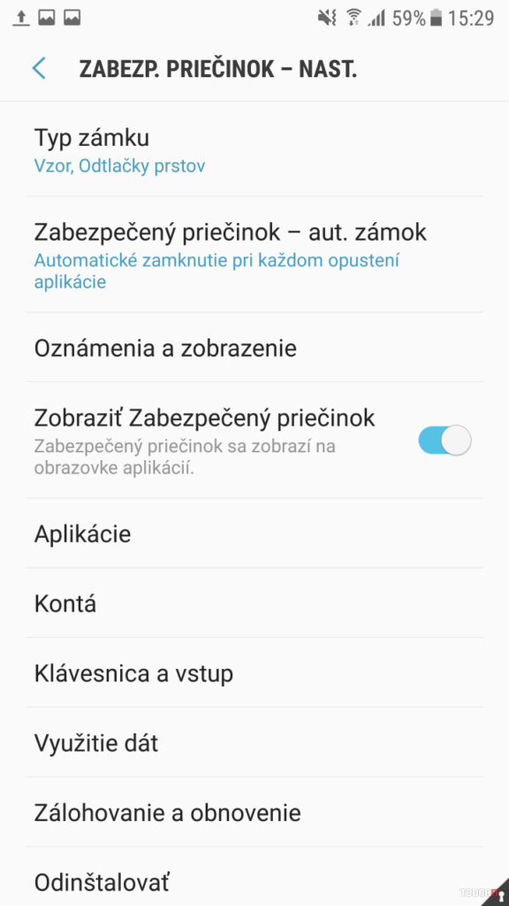 V časti detailných nastavení si môžete prispôsobiť správanie priečinka ešte detailnejšie. Prakticky sa tu dá zmeniť všetko, čo potrebujete. Napríklad aj spôsob prihlasovania alebo zámenu kódu. Teda ak chcete zmeniť v úvode nastavený vzor či PIN kód, tu sa to dá. Špecialitou je pridanie identity kontaktov, ktoré máte v priečinku do hlavného rozhrania smartfónu. Štandardne je to vypnuté. Ak ale máte nejaké kontakty uložené v priečinku, ich meno sa štandardne nezobrazí pri volaní.