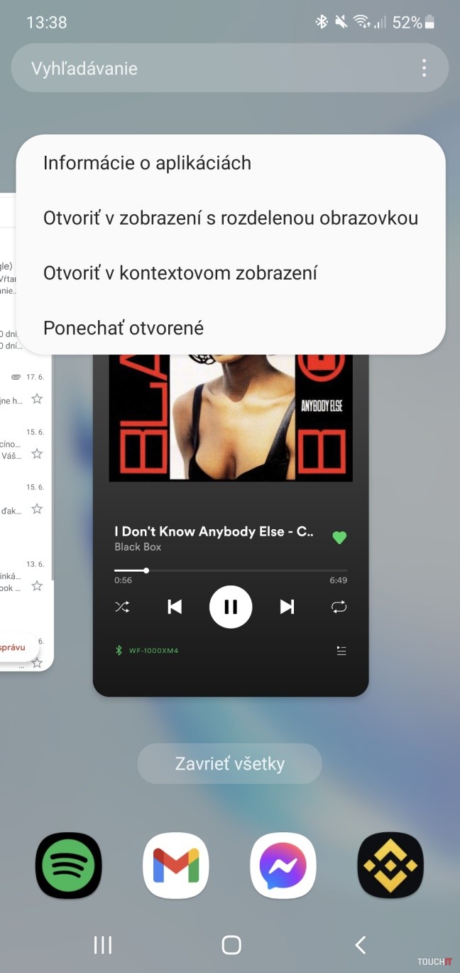 Takže pri niektorom páre aplikácií by to mohlo byť za niektorých okolností užitočné a vy si tak uľahčíte prácu. Najmä ak chcete mať povedzme aplikáciu Teams, E-mail alebo Keep ľahšie po ruke. Tri okná zatiaľ vedľa seba nedáte, no dve áno. Nájdu sa výnimky, spravidla hry, ktoré sú robené tak, aby využívali celú obrazovku. Z hľadiska ich dizajnu je jasné, že rozdeliť ich na polovicu nie je možné, najmä ak sa hry nedajú používať vo vertikálnom režime. A to sa mnoho hier naozaj nedá. Ako na to? Systém rozdelenia obrazovky nie je zložitý, no treba sa to naučiť, aby ste v tom získali cvik. Dostanete sa k nemu tlačidlom na multitasking. To je tlačidlo, ktoré vám zobrazuje všetky otvorené aplikácie alebo naposledy otvorené. To, či sú ešte stále aktívne, nemáte ako zistiť a je možné, že ich systém vypol. Stále budú zobrazené v tomto menu. Každá aplikácia má ikonu v jej záhlaví. Ťuknite na ňu prstom a následne vyberte možnosť Otvoriť v zobrazení s rozdelenou obrazovkou. Aplikácia sa umiestni nahor a vy môžete zo spodnej časti vybrať ďalšiu. Prečítajte si aj: https://touchit.sk/ako-skryt-aplikacie-v-samsungu/350488Podobné články