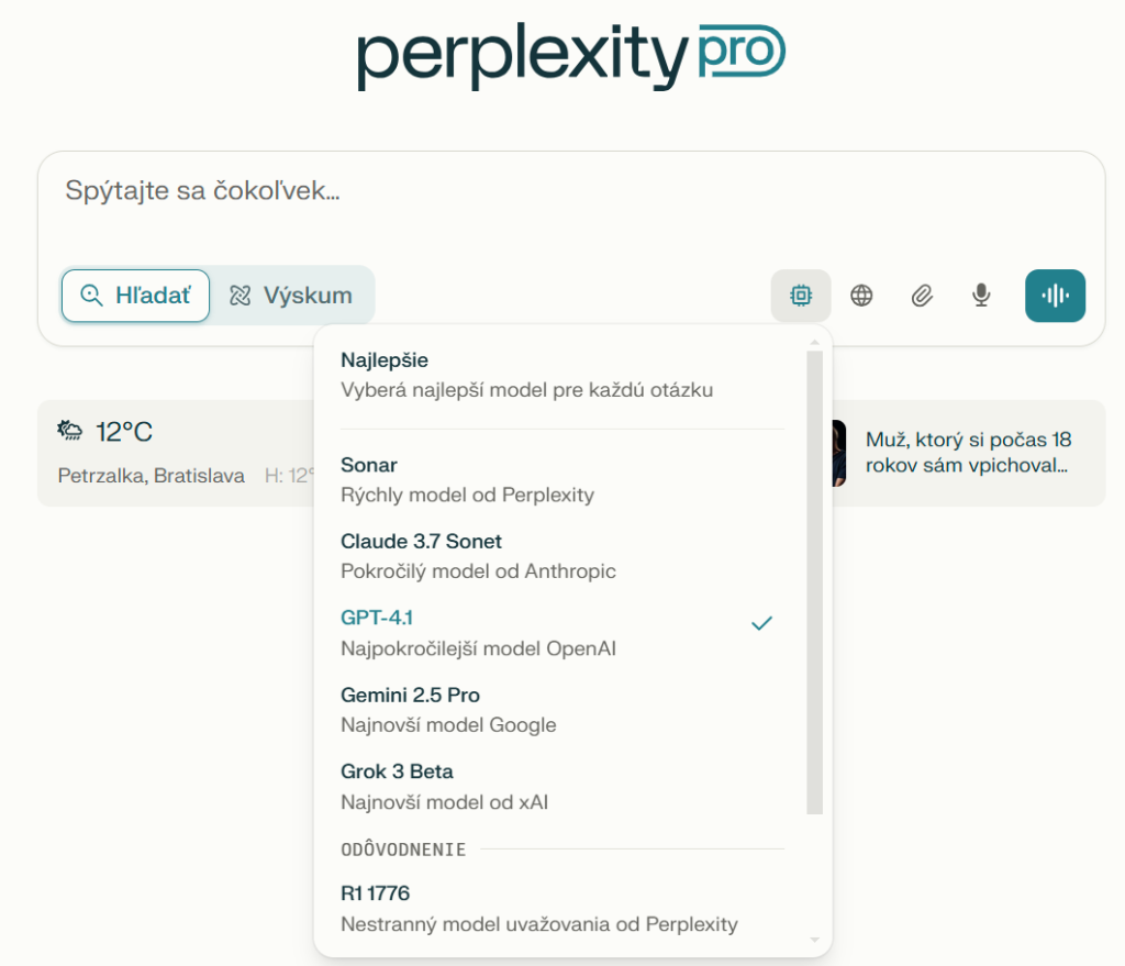 Tu na to idú trochu inak aj z dôvodu zlúčenia viacerých modelov konkurenčných firiem, ktoré ich vytvorili. Perplexity je agregátor a služba, ktorá si sčasti prispôsobuje jednotlivé LLM.