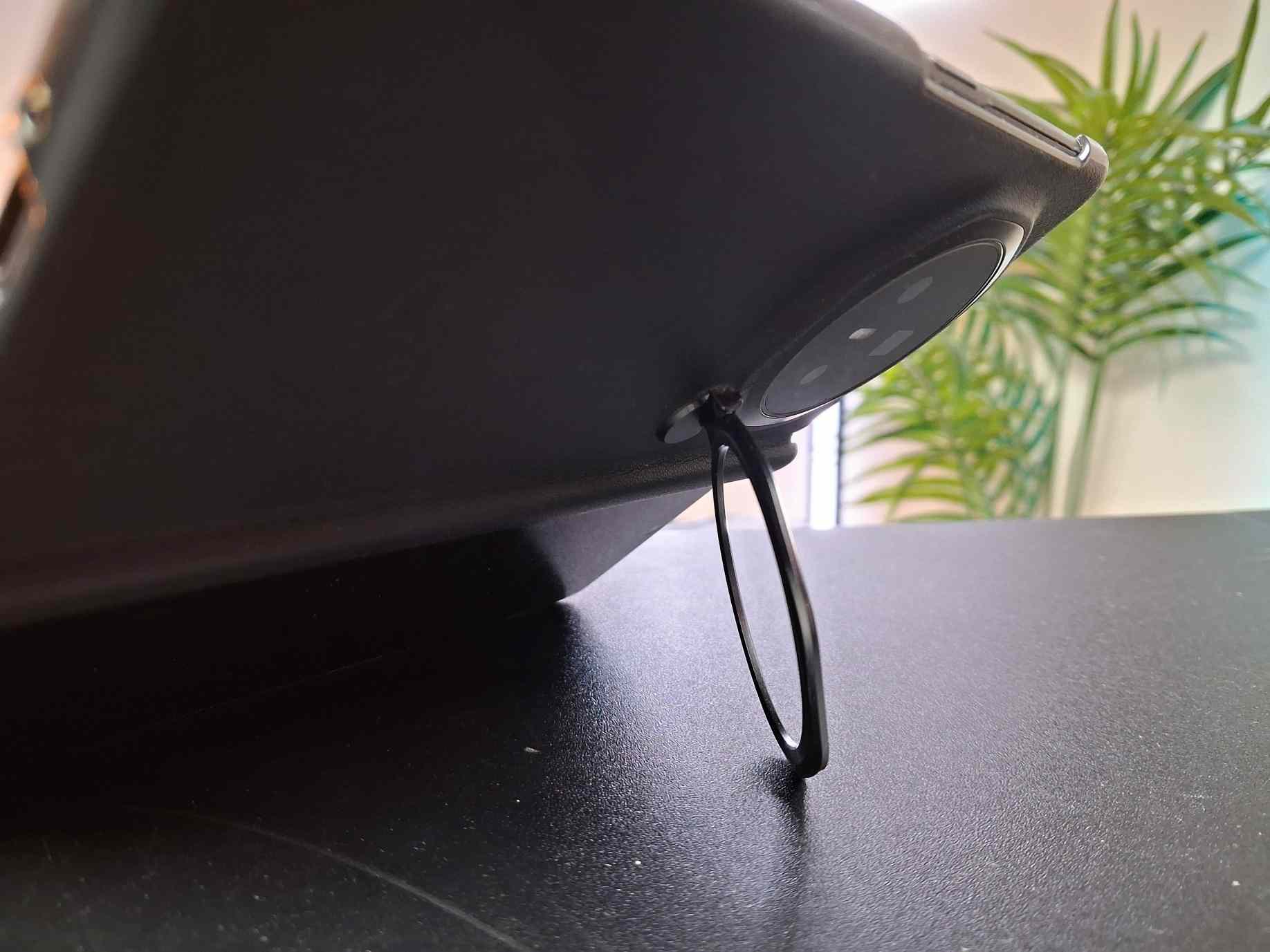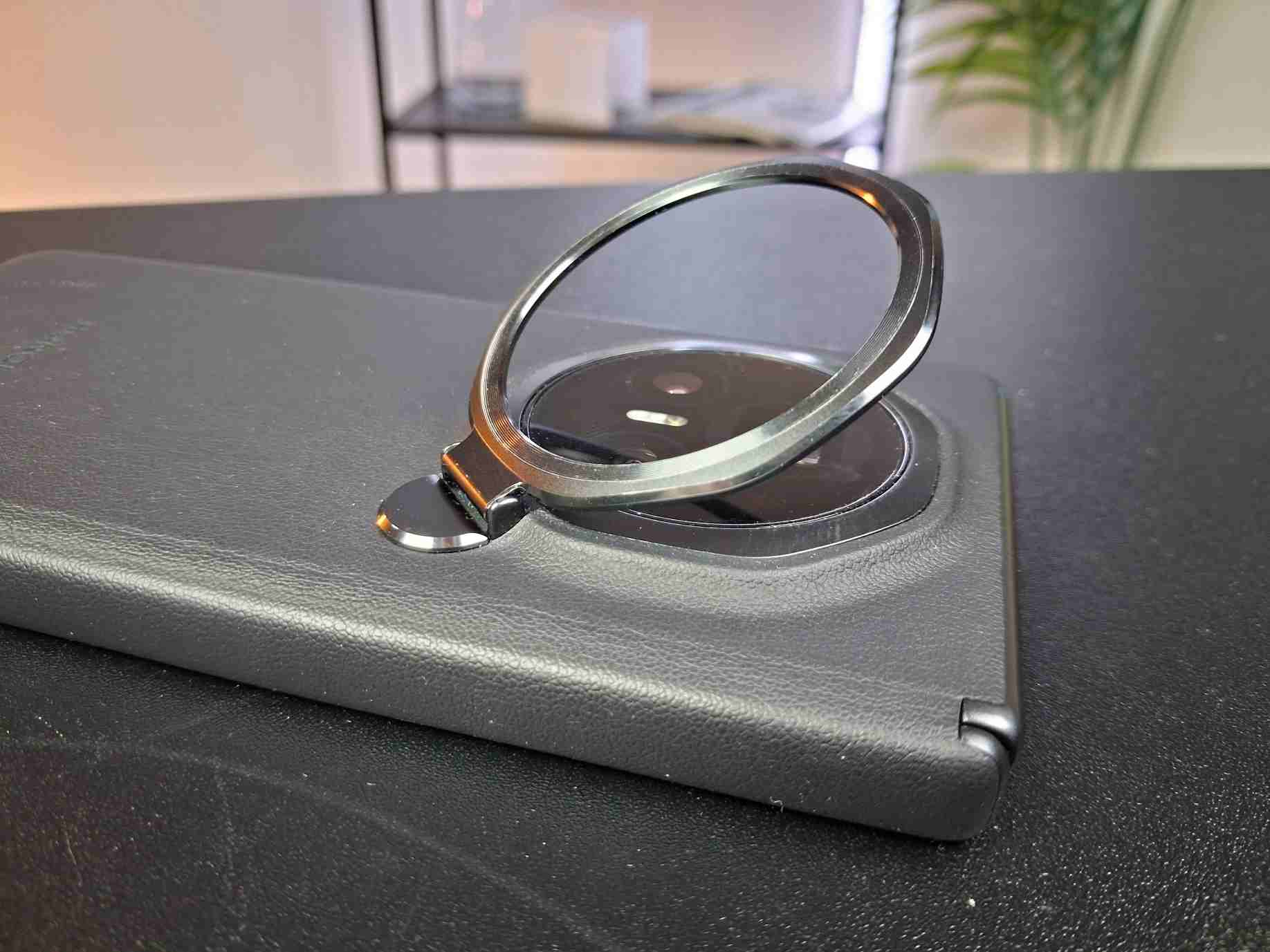 Ten dostanete priamo v balení a skladá sa z 2 častí, podobne ako pri iných skladačkách. Zadná časť sa nasadí na zadnú stranu v zloženom stav a na prednú stranu sa dá použiť ešte doplnkový rám. Zadná časť má 8-uholníkový kryt na fotoaparát, ktorý je výklopný. Vďaka nemu si môžete telefón v zatvorenom alebo otvorenom stave nastaviť na stole tak, aby ste na ňom mohli pozerať filmy alebo iný obsah.