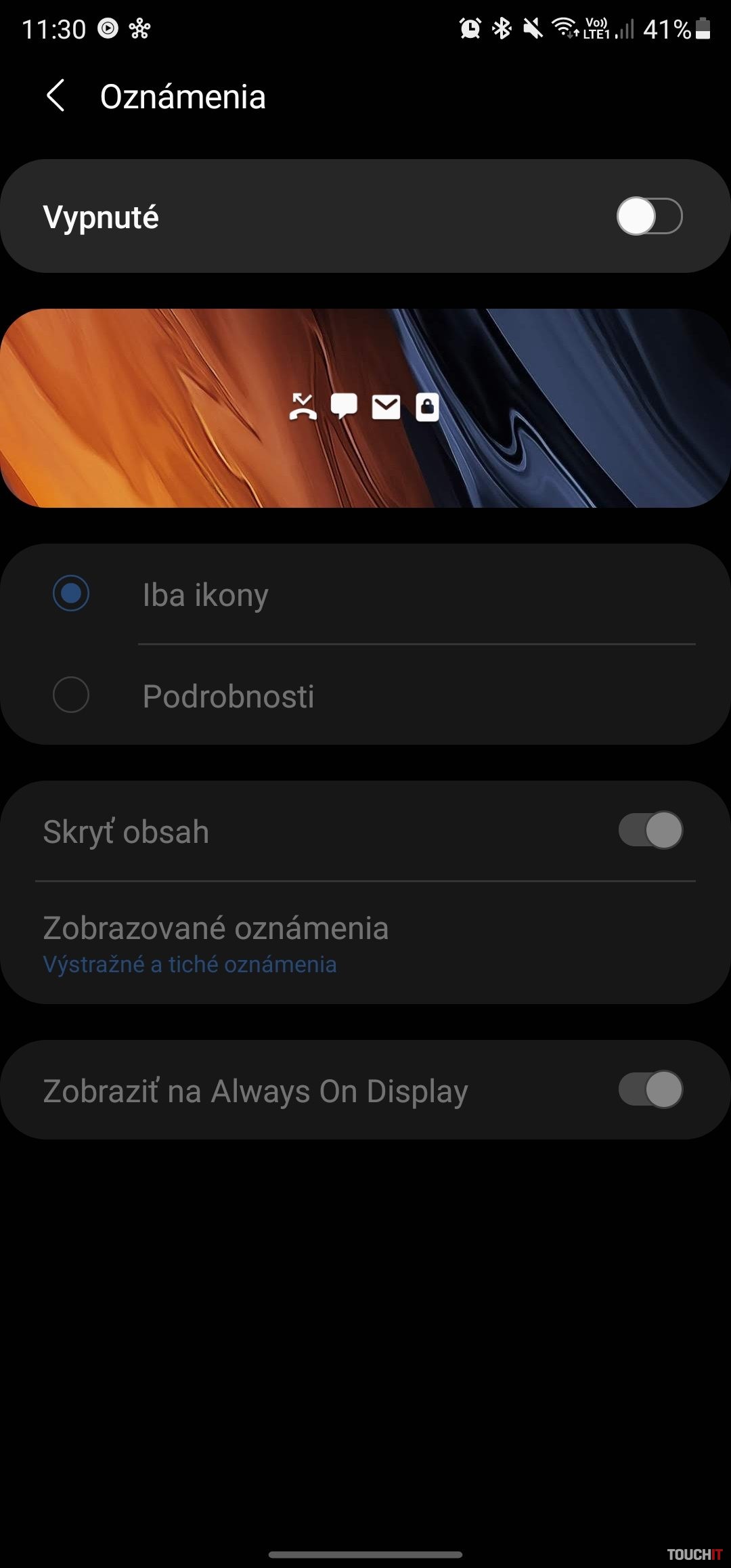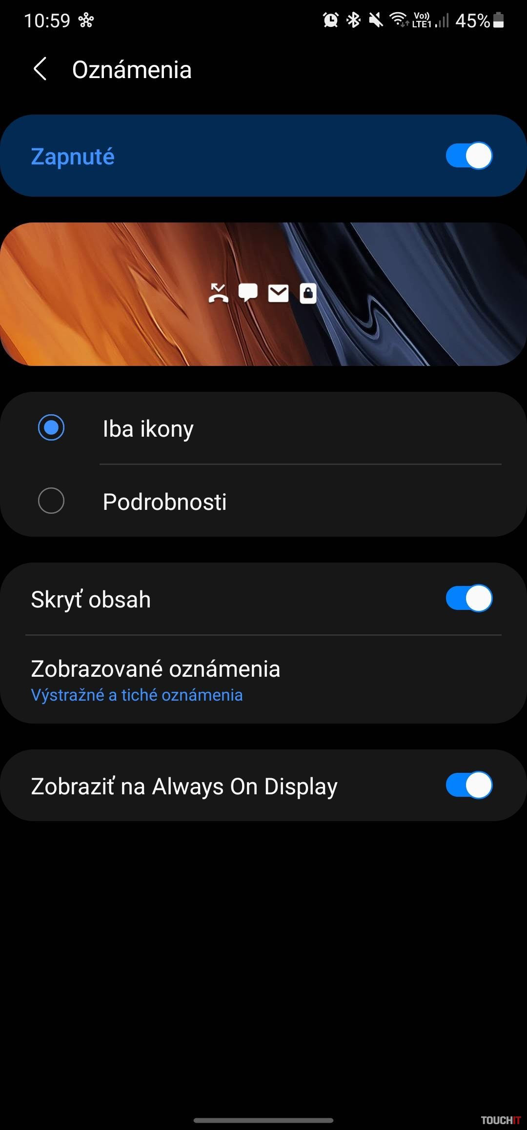 - Ikony aplikácie a obsah: Ide o minimalistické zobrazovanie symbolu aplikácie na uzamknutej obrazovke. Po kliknutí na notifikačnú ikonu na uzamknutej obrazovke sa takisto zobrazí náhľad správy.