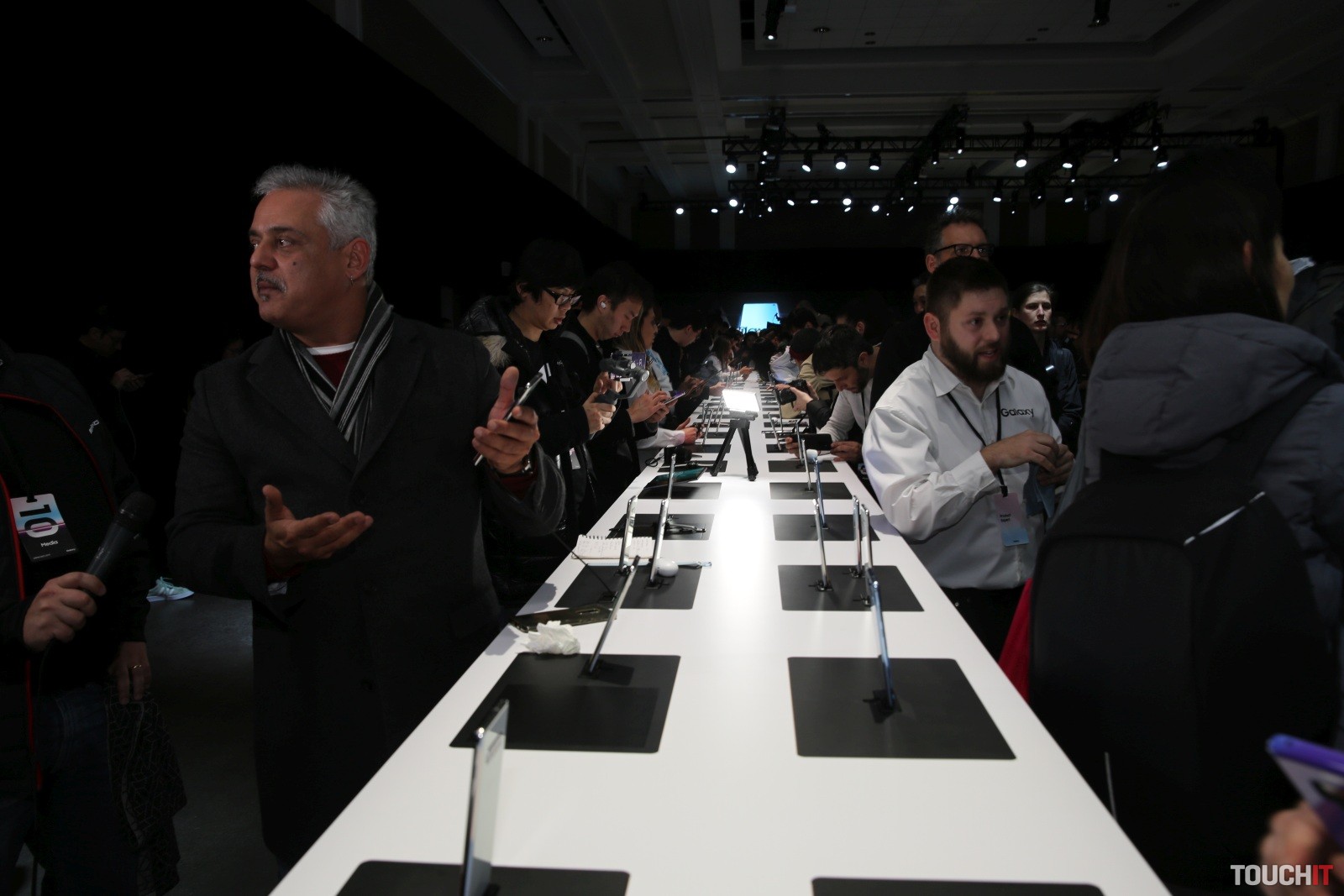 V San Franciscu sa uskutočnilo predstavenie nových vlajkových lodí Samsung Galaxy S10. Samsung takisto prezradil ďalšie detaily o svojom skladateľnom smartfóne Galaxy Fold a oznámil aj nové inteligentné hodinky, fitness náramky a bezdrôtové slúchadlá. Živý prenos z tlačovej konferencie sledovali milióny ľudí na celom svete. Po skončení prezentácie však samotná udalosť neskončila. Začala jej druhá časť, ktorá už nebola streamovaná naživo a účastníci tlačovej konferencie si mohli vyskúšať všetky predstavené novinky naživo. Výnimkou bol skladateľný Samsung Galaxy Fold, ten si zatiaľ necháva výrobca sám pre seba. Rovnako to funguje aj na ostatných tlačových konferenciách a predstaveniach nových produktov. Takzvanú demo zónu z predstavenia Galaxy S10 sme však pre vás nafotili. Poďte sa teda pozrieť, ako to vyzerá v zákulisí:Fotky si môžete zväčšiť kliknutím a následne nimi listovať pomocou smerových šípok na klávesnici