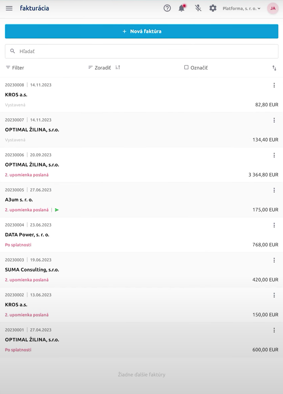 Spracovávanie dokumentov cez Digitálnu kanceláriu zaistí aj kontrolu nad splatnosťou faktúr. Umožňuje zasielanie pripomienok subjektom, ktoré nezaplatili v termíne splatnosti. Fakturujúca firma má zároveň prehľad o tom, či odberateľ faktúru videl.