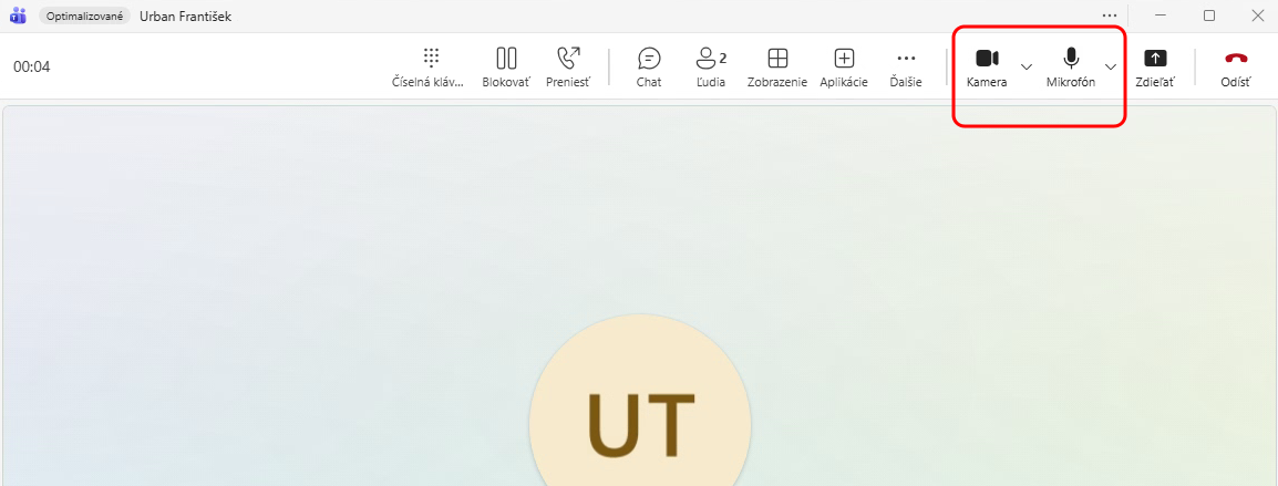 V otvorenom okne vpravo hore si všimnite ikonku telefónneho slúchadla/kamery, ktorou zahájite hovor. Kliknutím na striešku vedľa tejto ikony si môžete vybrať, či chcete zahájiť rovno hlasový hovor, alebo videohovor. Výberom sa ale nemusíte príliš zaoberať. Nech vyberiete ktorýkoľvek z nich, môžete sa medzi nimi ľubovoľne prepínať aj počas už prebiehajúceho hovoru, kde stačí kliknúť na ikonu kamery na hlavnom hornom paneli Teams, ktorým ju zapnete alebo vypnete.