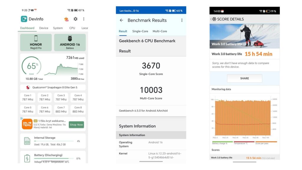 Ako je jasné, HONOR Magic8 Pro je mimoriadne výkonný telefón. Testovali sme samozrejme tú verziu, ktorá sa predáva na Slovensku. Čínska verzia je ešte o niečo výkonnejšia a má aj väčšiu kapacitu batérie.