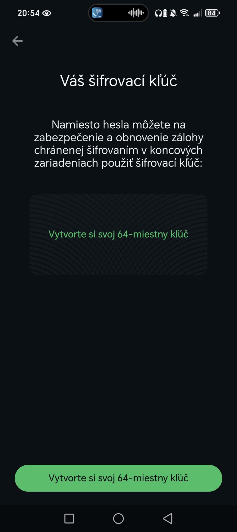 Kto neverí svojim heslám alebo nechce ukladať heslo k WhatsAppu cez správcu hesiel, môže využiť tento 64-miestny kľúč a uložiť si ho sám. Na výslednej obrazovke po potvrdení tohto spôsobu šifrovania sa zobrazí kľúč a podržaním prsta na ploche s kľúčom ho skopírujete do schránky.
