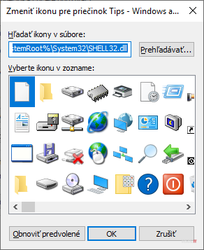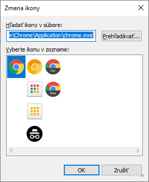 Ikony sa môžu nachádzať v DLL knižniciach, EXE súboroch alebo priamo v súboroch s príponou typu ICO. To znamená, že nemusíte použiť len tie ikony, ktoré vám daný typ programu (napríklad Chrome) ponúka. Tlačidlom Prehľadávať si vyberte vlastný DLL súbor alebo súbor ICO a pridajte ju. Nie všetky DLL knižnice obsahujú aj ikony.