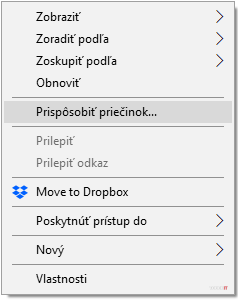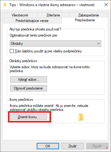 Ikony pre adresáre a pre súbory sa menia trochu odlišným súborom. Kliknite na adresár pravým tlačidlom a vyberte položku Vlastnosti. Zobrazí sa štandardné okno, ktoré asi poznáte. Na karte Prispôsobenie je tlačidlo Zmeniť ikonu. K tomuto oknu sa dostanete aj tak, že kliknete pravým tlačidlom na prázdne miesto v adresári a vyberiete priamo položku Prispôsobiť priečinok.