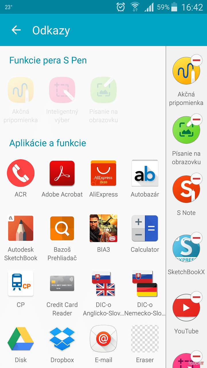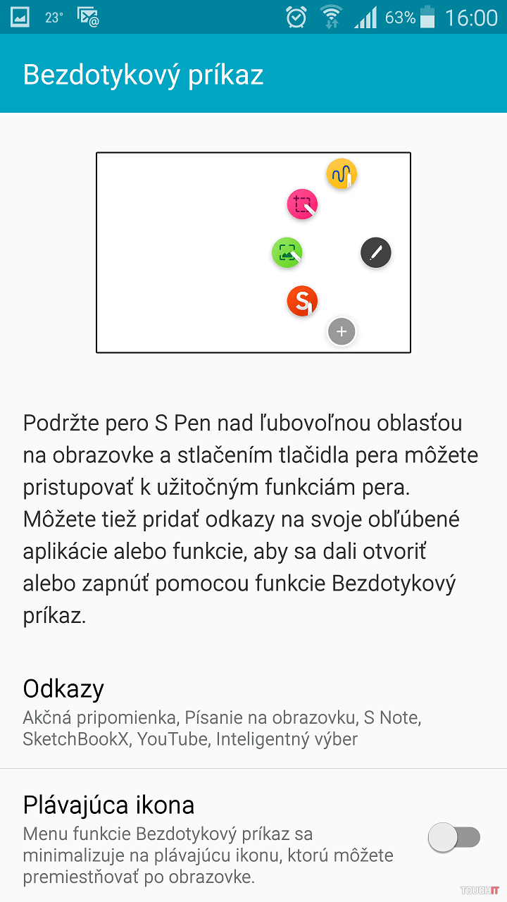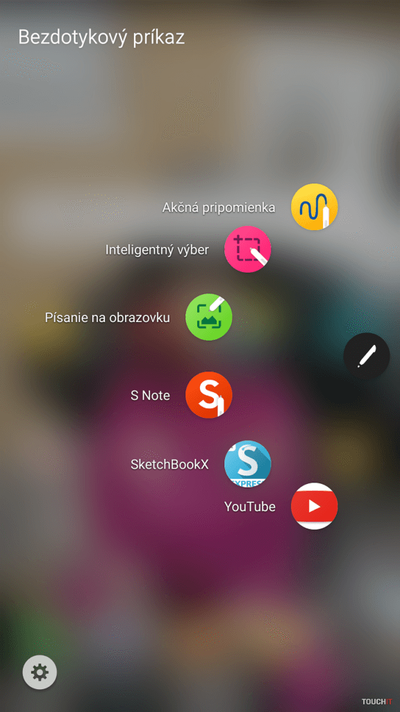Ďalšou novinkou je bezdotykový príkaz, viditeľná zmena dizajnu a funkcionality je ihneď po vytiahnutí pera S-pen. Ten je obdobný ako u Galaxy Note5 a ponúka až šesť odkazov, ktoré sú voliteľné. Vyberať môžete zo všetkých aplikácií v telefóne, čo je výhodou a v predchádzajúcej verzii nám to chýbalo.