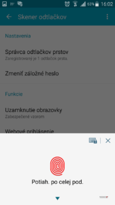 V zabezpečení zamknutej obrazovky je zmena v režime zabezpečenia zariadenia pomocou otlačku prsta. To je doplnené o alternatívny spôsob odomknutia (vzor, kód PIN alebo heslo). Aj keď je známe, že snímač otlačku prstov v tomto zariadení, je z prvej generácie od spoločnosti Samsung. Funkčnosť a rýchlosť je teda dosť slabá.