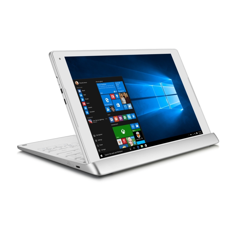 Výrobcu však môžeme pochváliť za celkové prevedenie. Konvertibilita zariadenia je zabezpečená pomocou žliabku s magnetickým konektorom, do ktorého tablet jednoducho položíte. Výhodou je jednoduché odnímanie a vkladanie. Nevýhodou je, že tablet možno používať iba pod jedným sklonom. Je však fajn, že ho môžete položiť z oboch strán, takže ak nepotrebujete klávesnicu, nebude vám zavadzať pred displejom a môžete pozerať videá. Tabletová časť neprekvapí. Dizajn je jednoduchý, strohý, ale účelný. Vpredu sú dva stereo reproduktory. Ich kvalita je v rámci možností nadpriemerne dobrá. Na bočnej stráne nájdete micro USB, micro HDMI konektory, microSD slot a 3,5 mm jack. Nechýba dvojica kamier, chrbát je plastový. Dokovacia stanica má plnohodnotný USB 2.0 port, micro USB konektor a slot na micro SIM kartu. Klávesnica je na pomery 10-palcových tabletov prekvapujúco pohodlná a písalo sa nám s ňou dobre. Budete si však musieť zvyknúť na posun numerických kláves s diakritikou o jeden kláves doprava. Dôvod je ten, že klávesy F1 až F12 sú umiestnené ako alternatívna funkcia a výrobca musel niekam zakomponovať kláves ESC. Touchpad je malý, avšak postačujúci. Z hľadiska používania nám vadilo, že touchpad často počas pohybu kurzora označoval text alebo objekt, ako keby sme mali stlačené ľavé tlačidlo myši. Tablet dokáže na jedno nabitie fungovať 6 hodín. S výdržou sme spokojní a chválime ju. Pripomienku máme k operačnému systému – pokiaľ sa vám s tabletom niečo stane a budete chcieť nainštalovať Windows 10 načisto po naformátovaní disku, musíte kontaktovať servis. Zariadenie totiž vyžaduje ovládače, ktoré nie sú voľne dostupné a nestiahne si ich ani Windows cez službu Windows Update. Samozrejme, obnoviť systém do výrobných nastavení môžete, vtedy sa využije obraz systému, ktorý je uložený na disku.