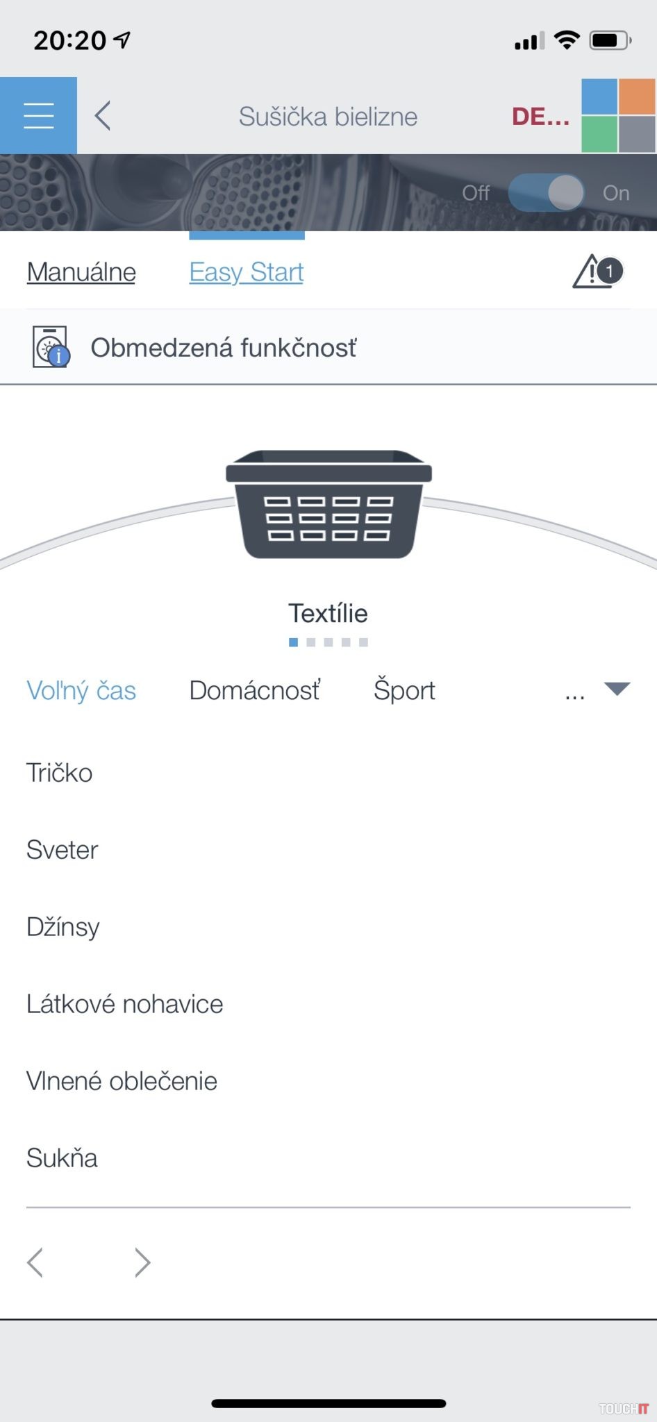 V prípade práčky je možné nastavovať rôzne programy, spustiť oneskorené pranie a začiatočníkov (v praní) poteší možnosť výberu typu oblečenia v aplikácii, na základe čoho vám bude odporučený najvhodnejší program. Taktiež je k dispozícii automatické dávkovanie pracieho prostriedku. Sušička, a taktiež umývačka riadu má podobné možnosti. Sušička napr. vie udržiavať oblečenie „teplé a v pohybe“, aby sa predišlo madžganiu a krčeniu. K umývačke ešte dodáme, že vždy pred jej spustením musíte povoliť vzdialené ovládanie, bez toho ju nespustíte. Príklad – deti ju doma naplnia, povolia prístup jedným tlačidlom a vy nastavíte, čo sa bude ďalej diať, resp. kedy začne proces umývania. Nie je to ešte úplne dokonalé, ale to sa časom doladí.