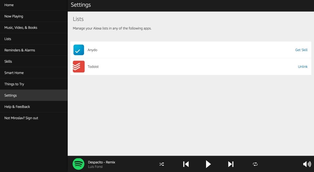 Prepojené hudobné aplikácie, kalendár a Todoist