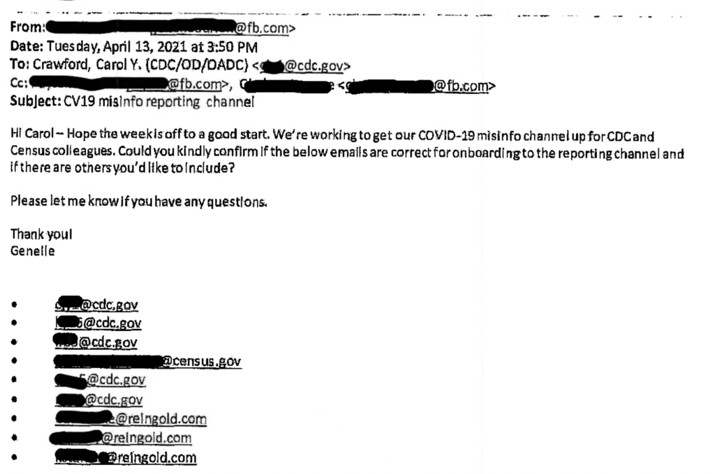 Objavili sa dôverné informácie, ktoré získala organizácia Reason Foundation a hovoria o tom, že CDC (Centers for Disease Control and Prevention) bolo v kontakte s Facebookom a riadilo, čo sa môže na tejto sieti publikovať a čo nie. Moderátori sociálnej siete žiadali zdravotníckych úradníkov o kontrolu tvrdení v spojitosti s týmto vírusom.