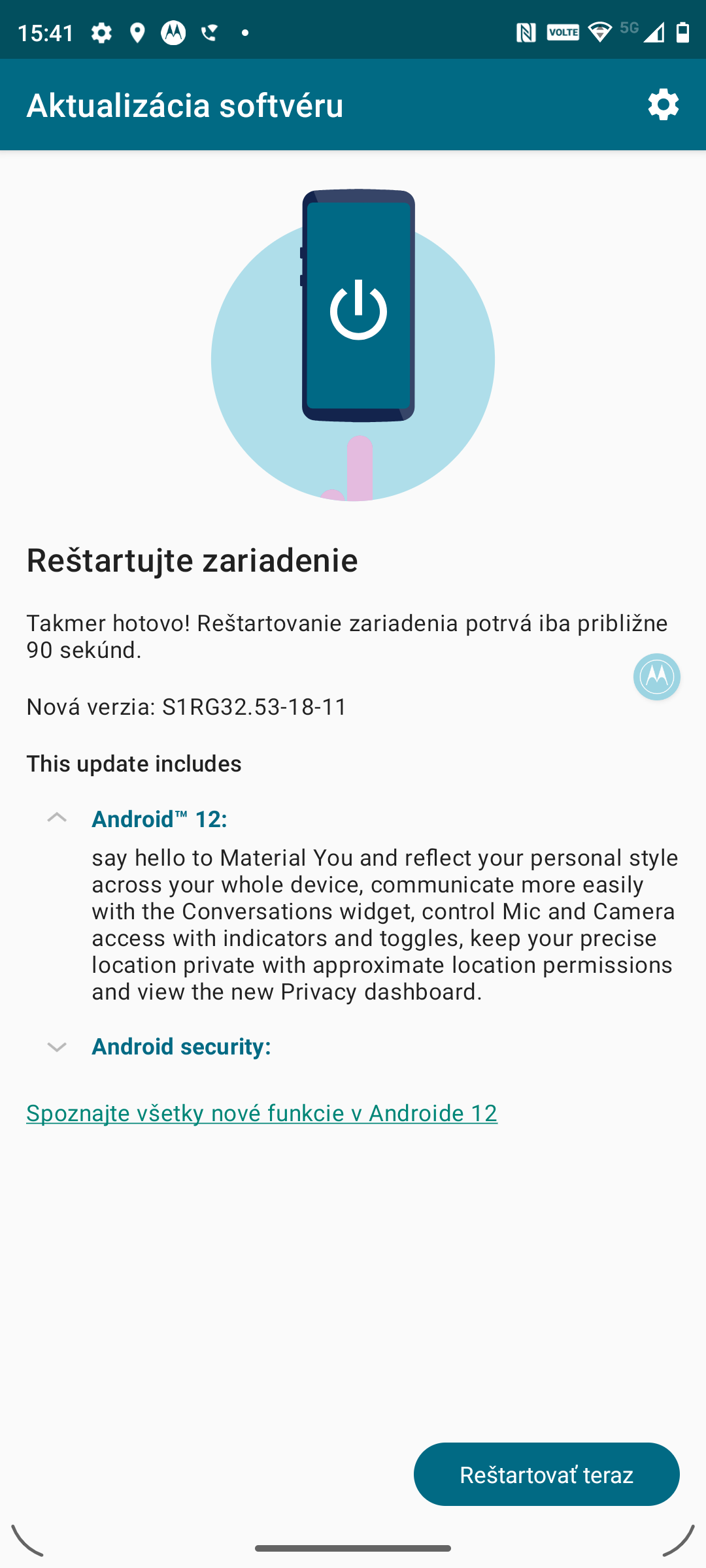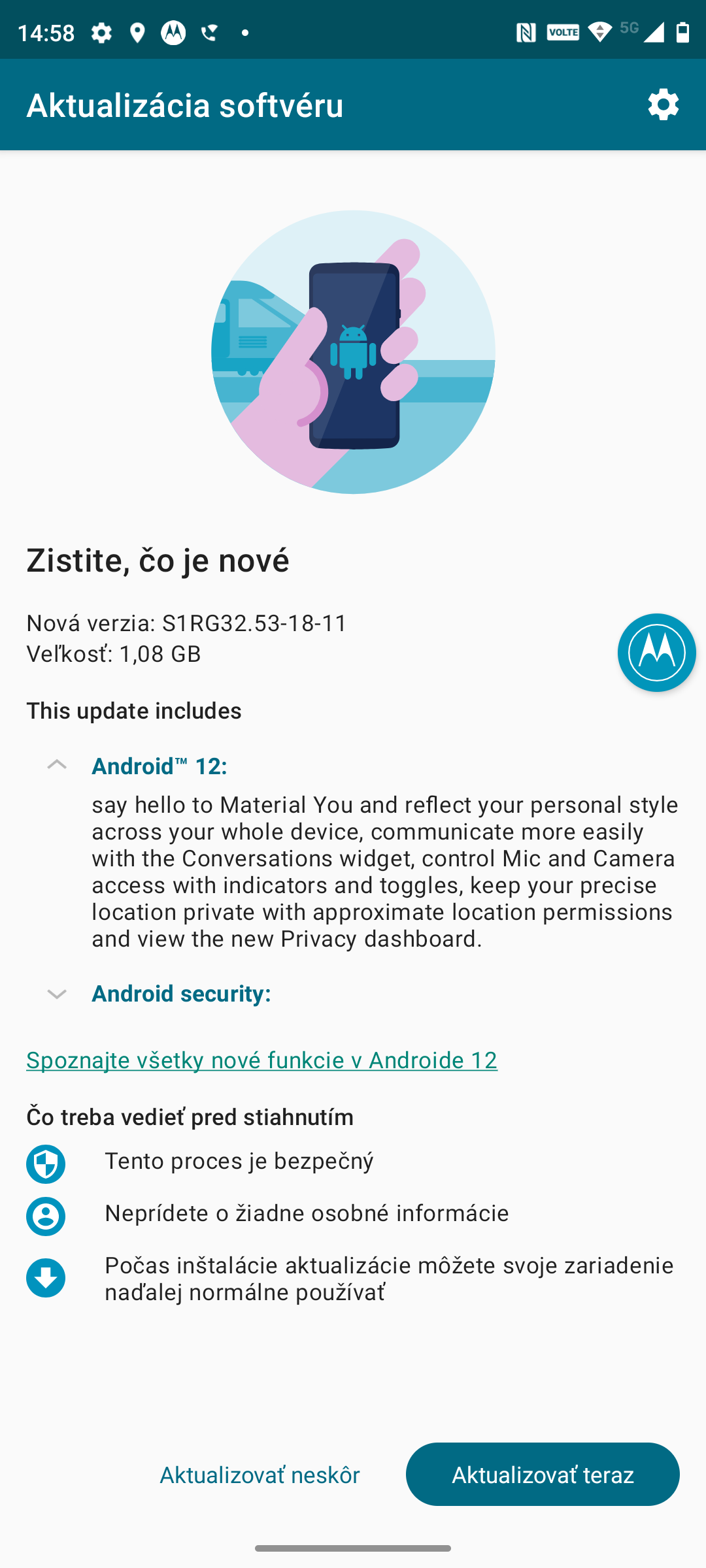 - Motorola moto g30 – dostupná oprava zabezpečenia z februára 2022, Android 12.