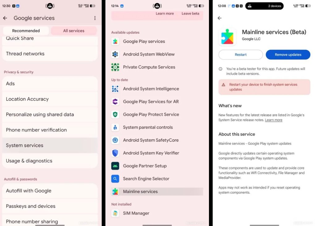 Je nutné túto novinku odlišovať od inej existujúcej funkcie odinštalovania aktualizácie Služieb Google Play. Táto možnosť existovala v nastaveniach Androidu už dlho. Avšak novinka zjednodušuje správu Google Play Systémových Aktualizácií (Mainline Modules), ktoré ovplyvňujú základné fungovanie systému. Hoci sa táto funkcia stále nachádza hlbšie v nastaveniach, jej zavedenie eliminuje potrebu zložitých technických postupov.