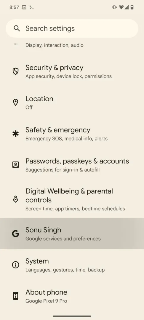 Google iba nedávno vydal Android 15 aj pre svoje Pixel smartfóny, počnúc sériou Pixel 6. V nadväznosti na novú verziu mobilného operačného systému sa na základe rozboru kódu dozvedáme, že Google pre služby a predvoľby v ponuke Nastavenia systému, čoskoro začne zrkadliť názov účtu používateľov namiesto všeobecného označenia Google.