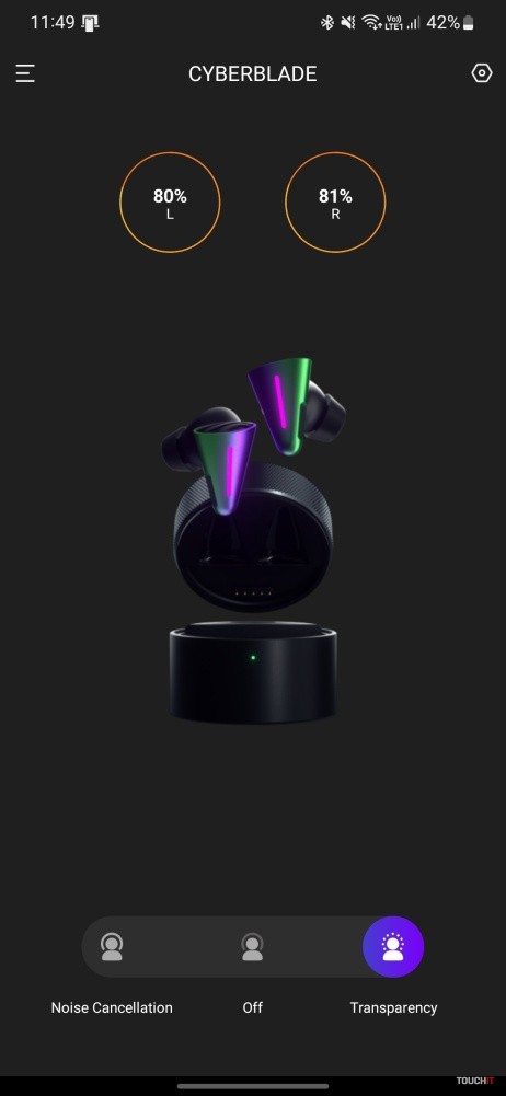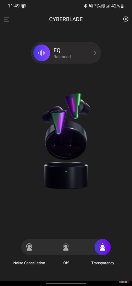 Okrem toho aplikácia ponúka aj prehľad o úrovni nabitia slúchadiel a puzdra, tri EQ režimy (použiteľný snáď iba Balanced) a nastavenia RGB efektu slúchadiel.