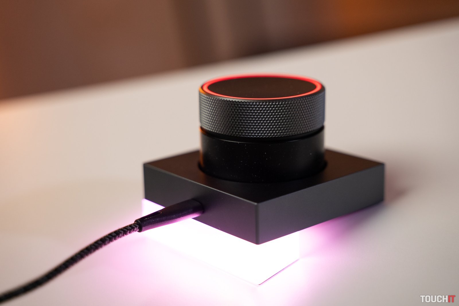 V magnetickom kryte nabíjacieho puzdra je integrovaný otočný prstenec, prostredníctvom ktorého je možné meniť hlasitosť – pri otáčaní doľava sa znižuje hlasitosť, doprava zvyšuje. Zmenu hlasitosti sprevádza aj znižovanie alebo zvyšovanie jasu RGB pruhu v hornej časti krytu. Toto však funguje iba pri pripojení slúchadiel k zariadeniu pomocou kábla.
