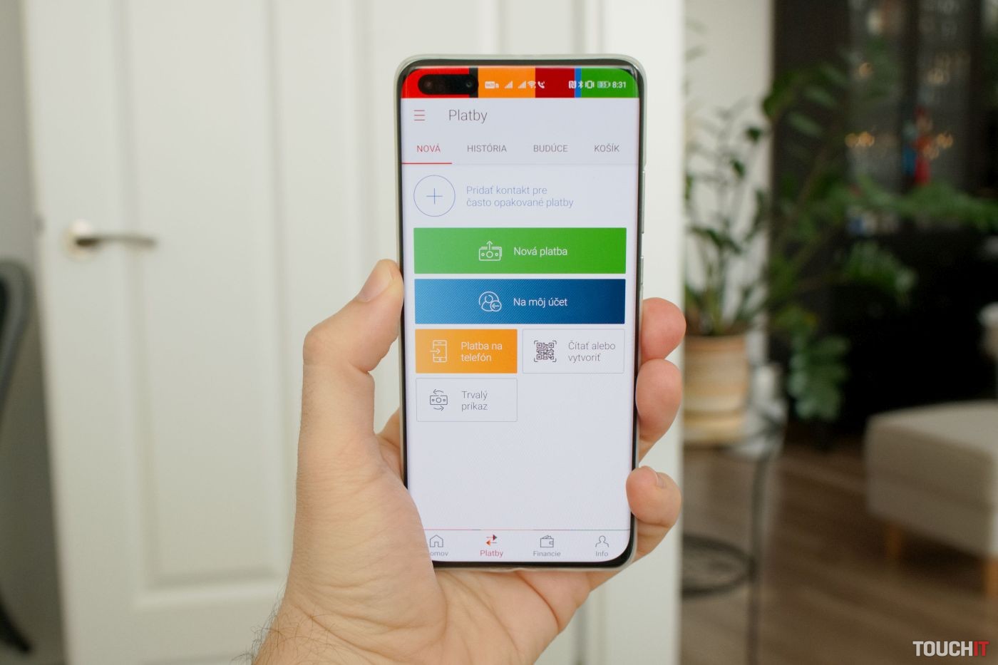 Aplikácia mBank ponúka rýchly prehľad o zostatku na účte a na kreditnej karte, ktorý môžete vidieť aj bez nutnosti prihlásiť sa do aplikácie. Po prihlásení, ktoré je možné vykonať odtlačkom prstu alebo PIN kódom, máte detailný prehľad o posledných transakciách. Na úvodnej obrazovke sú k dispozícii tri ikony pre rýchlu voľbu, takže si môžete vytvoriť skratku na vytvorenie novej platby, presun prostriedkov na váš účet či na splátku kreditnej karty. Rovnako máte okamžitý prehľad o posledných transakciách s rýchlym prístupom na obrazovku s kompletnou históriou. V rámci nej môžete pohodlne vyhľadávať v transakciách pomocou fulltextového vyhľadávania. Aplikáciu od mBank používame na rôznych zariadeniach so systémom Android a iOS už dlhodobo a oceňujeme prehľadné kategorizovanie platieb a transakcií. Vďaka tomu máte rýchly prehľad o tom, koľko peňazí ste zaplatili za potraviny či pohonné hmoty. Aplikácia tiež ponúka prehľadné informácie o plánovaných budúcich platbách. Z praktického hľadiska využívame mobilnú aplikáciu mBank najčastejšie na kontrolu a autorizovanie platieb, na rýchle platenie cez QR kód a na správu platobných kariet. Všetky tieto funkcie ponúka aj aplikácia pre Huawei telefóny. K dispozícii je funkcia na poslanie platby na telefón či jej vytvorenie/pohodlné zaplatenie cez QR kód a výhodou sú tiež už spomenuté fungujúce push notifikácie.Možnosti platieb a mobilné autorizácie v aplikácii mBank. Zdroj: Roman Kadlec/TOUCHIT