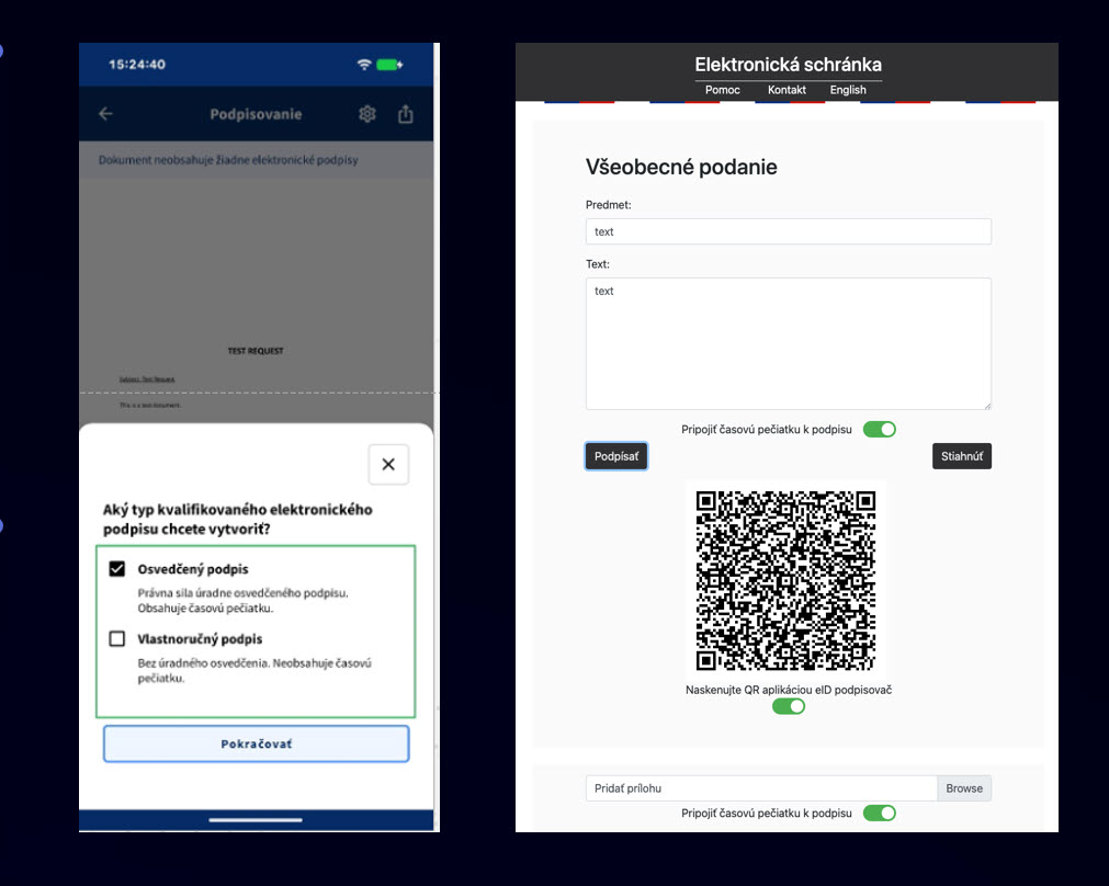 Štátny tajomník ministerstva vnútra, Patrik Krauspe, zároveň oznámil, že rezort poskytne technické štandardy na integráciu podpisovania aj pre tretie strany. V praxi to znamená, že banky, poisťovne alebo mestá nebudú musieť budovať vlastné riešenia. Jednoducho využijú infraštruktúru ministerstva, pričom používateľ podpíše dokument napríklad skenovaním QR kódu alebo priamo cez aplikáciu eIDENTITA.