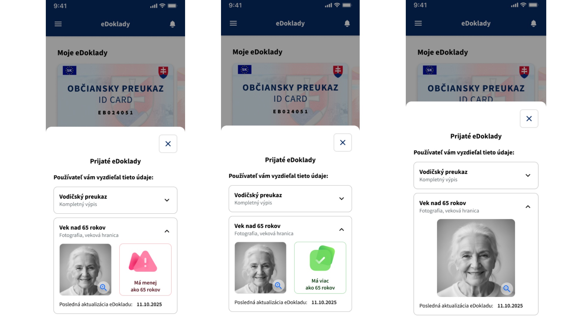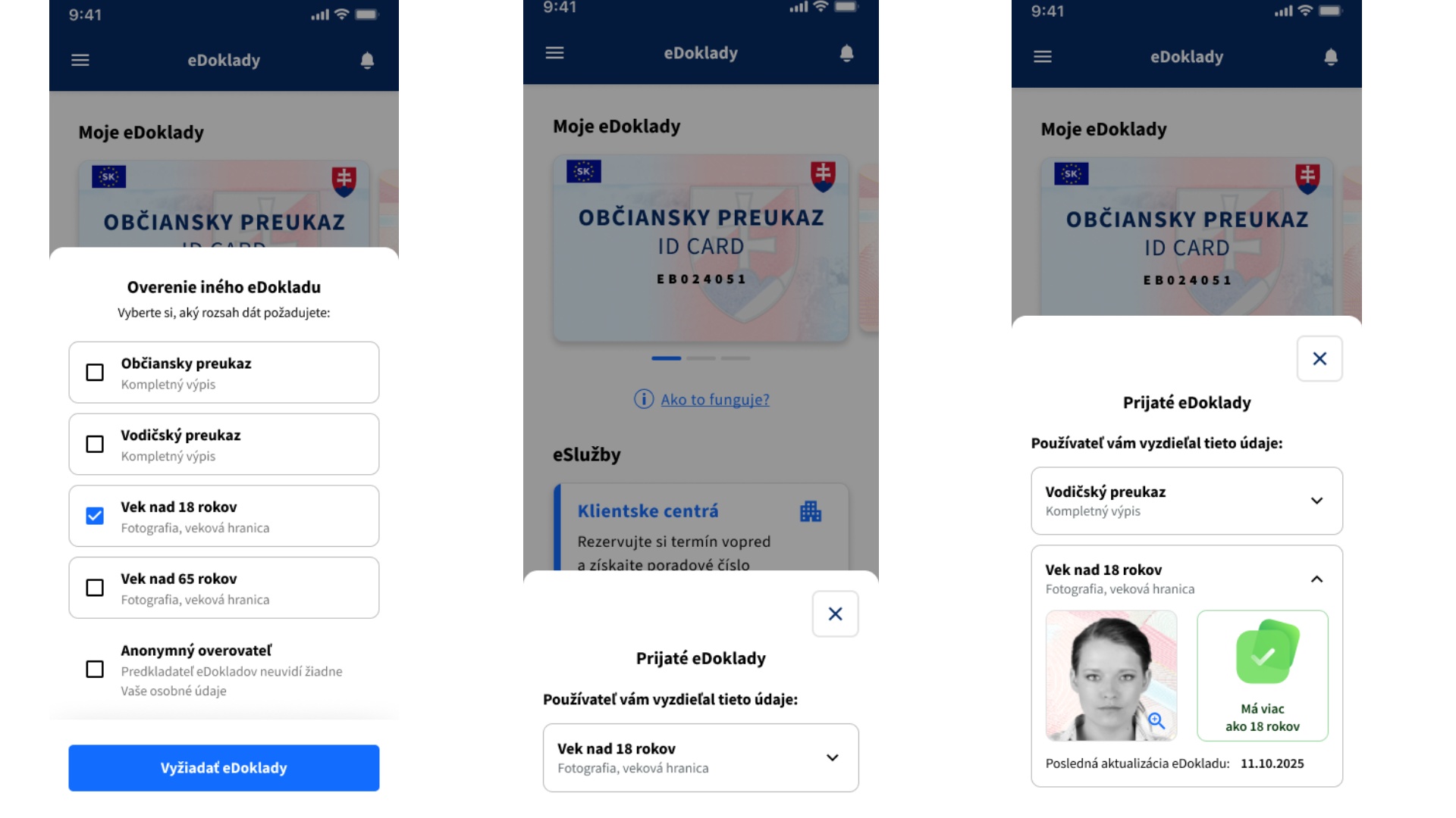 Najviditeľnejšou novinkou je funkcia overenia vekovej hranice. Overovateľ, teda napríklad predavač alebo obsluha v gastre získa informáciu výlučne o tom, či osoba dosiahla hranicu 18+ alebo 65+. Nedozvie sa meno, dátum narodenia, bydlisko ani nič ďalšie. Takéto niečo sa z fyzickým dokladom, totožnosti nedá zrealizovať.
