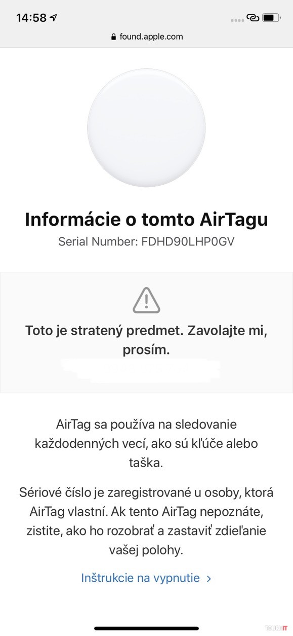 Ďalšou možnosťou je označiť AirTag ako stratený, čo využijete najmä vtedy, keď ste si napr. niekde zabudli kľúče, prípadne vám vypadli a vy neviete kde. Tento režim je veľmi dôležitý a prichádza na rad aj toľko omieľaný Apple ekosystém. Ak označíte AirTag ako stratený, tak môžete do poznámky zadať vaše číslo, aby vám prípadný poctivý nálezca mohol zavolať (ak bude vedieť ako na to..).