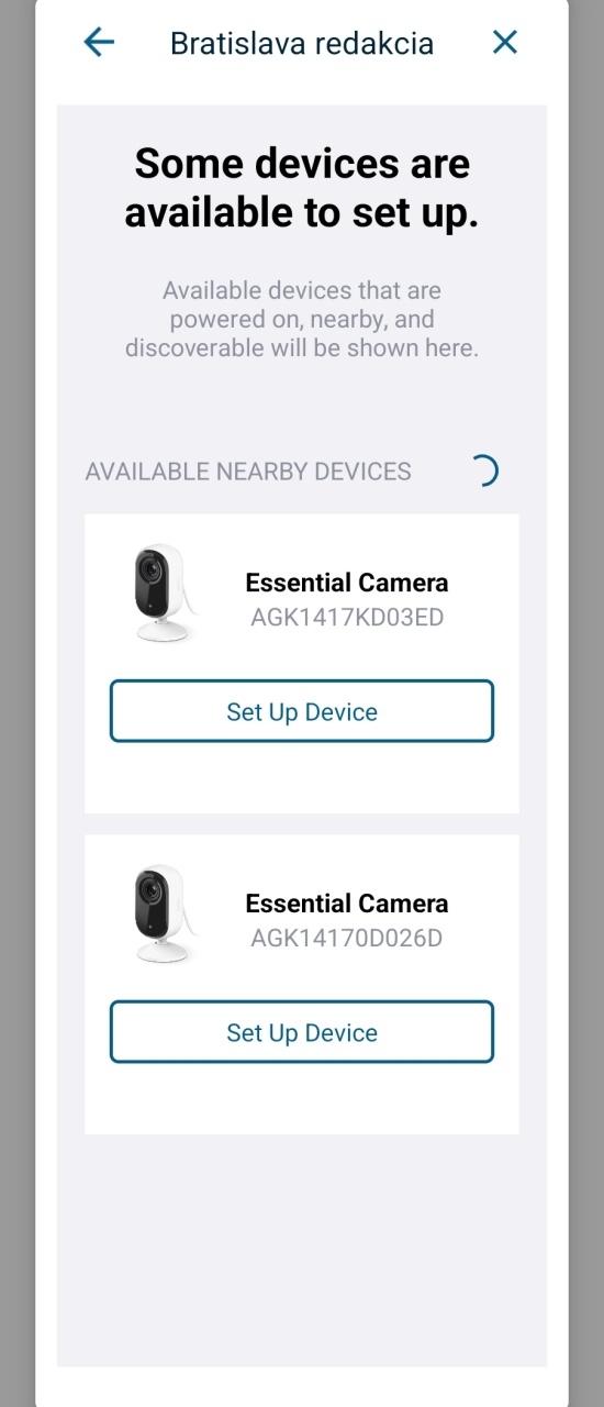 Arlo Essential Indoor Camera naozaj stačí pripojiť do zásuvky a máte polovicu inštalácie za sebou. Do mobilného telefónu si nainštalujete aplikáciu Arlo Secure a následne stlačíte párovacie tlačidlo v hornej časti kamery. V dodávke tohto balenia sú dve kamery, aplikácia tak nájde dve kamery a tie nastavujete. V rámci toho vyberiete Wi-Fi sieť, na ktorú budú kamery pripojené.