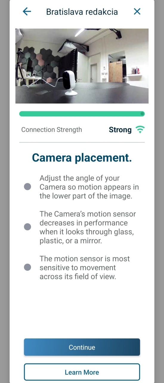 Kamery sa po pripojení updatujú na najnovší firmware. Potom určíte, či je kamera umiestnená vodorovne alebo zvislo a zobrazí sa jej obraz, aby ste ju mohli presne umiestniť do polohy vhodnej na sledovanie domácnosti. Tým je kamera nainštalovaná, to isté realizujete aj s druhou kamerou.