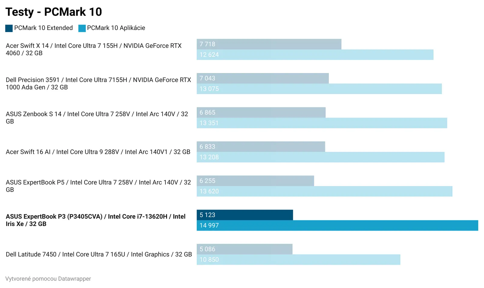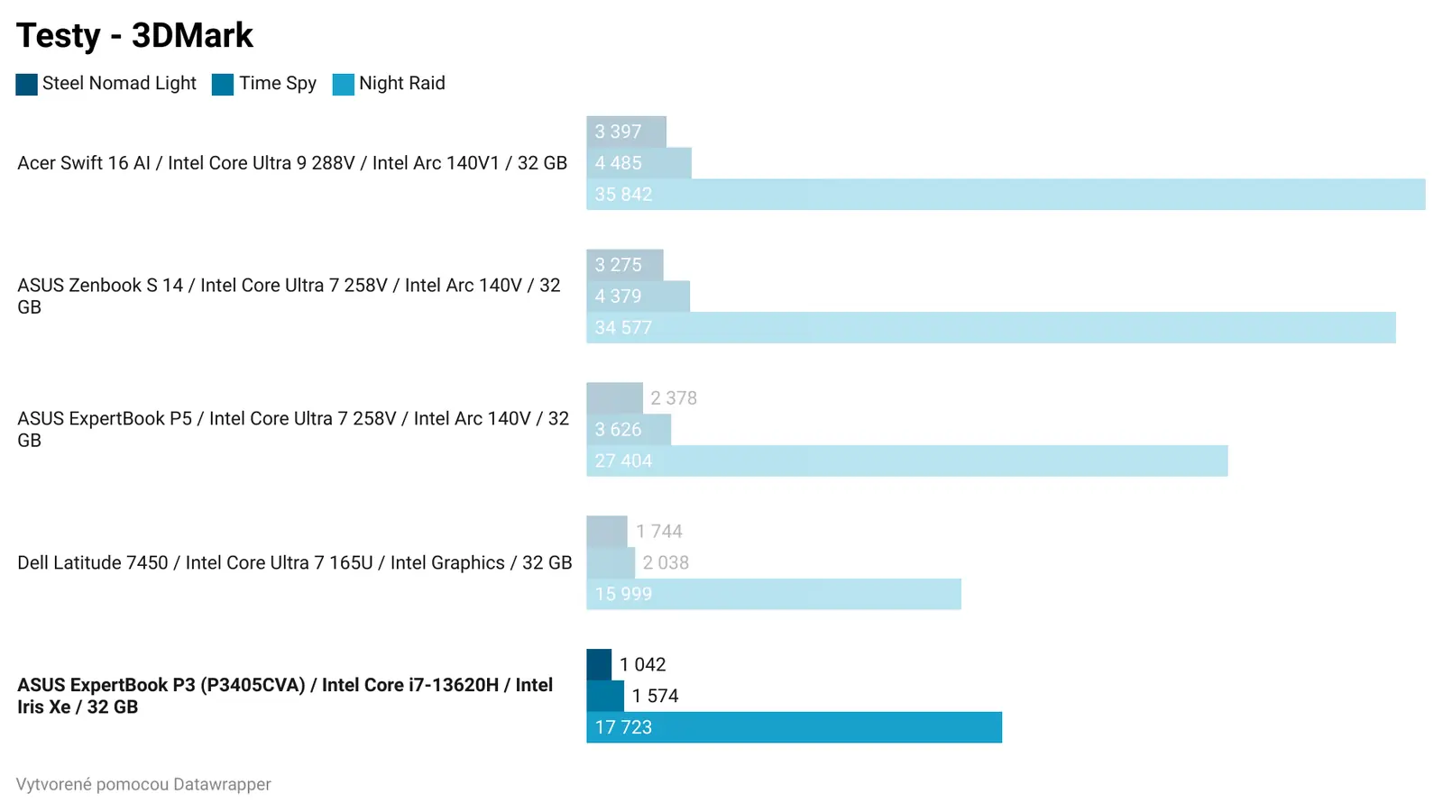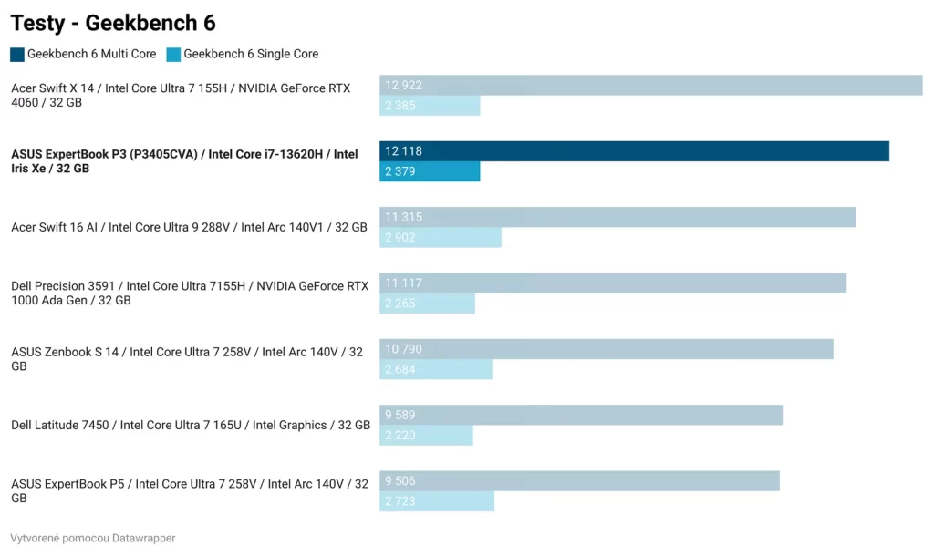 Pozrite si porovnanie ExpertBooku P3 s inými notebookmi a konfiguráciami v grafoch.