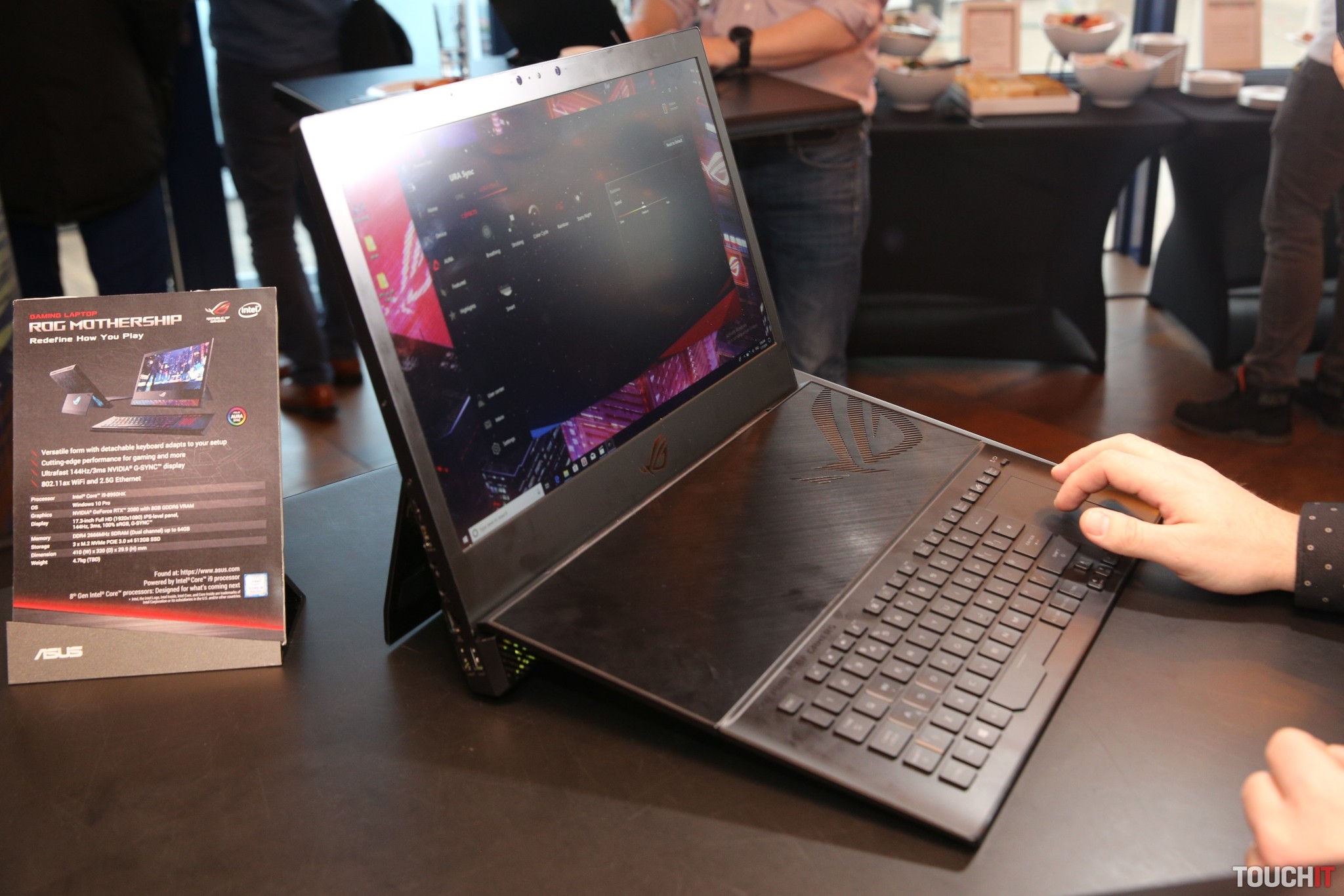 Vo výbave tohto krásavca je samozrejme najvýkonnejšia grafická karta NVIDIA RTX 2080 Max-Q Design, k tomu Intel procesor 8. generácie i9 8950HK a až 64 GB. Procesor sa dá manuálne prepnúť na frekvenciu až 4,8 GHz. ASUS ROG Mothership je počítač unikátny svojim dizajnom, ktorý sa nepodobá na nič, z doteraz známeho z mobilného sveta.
