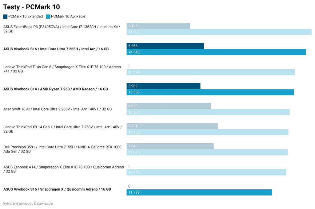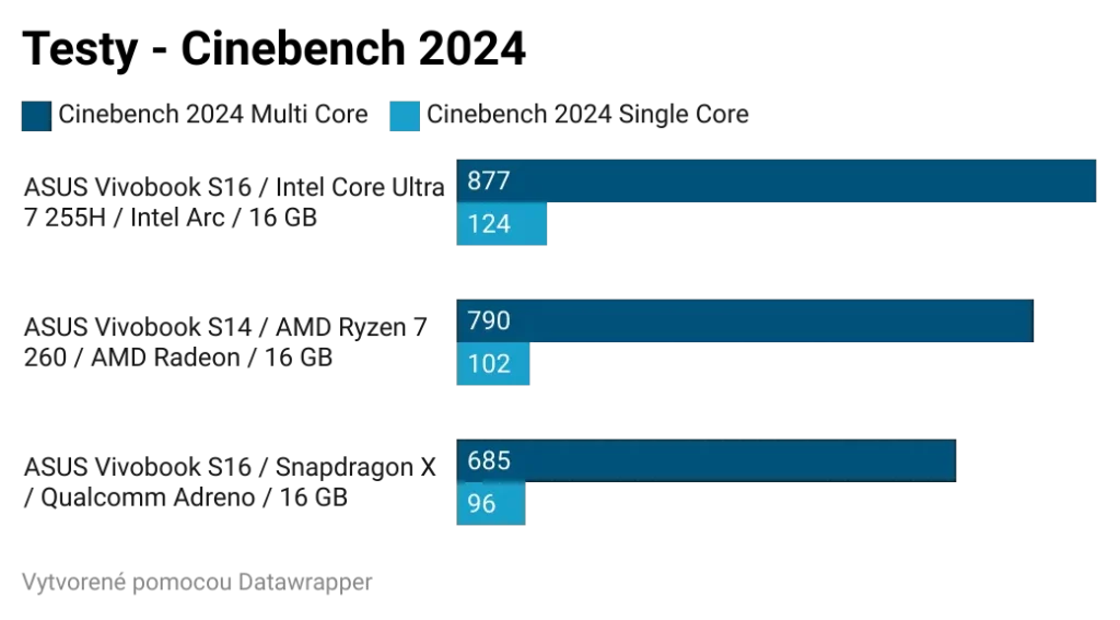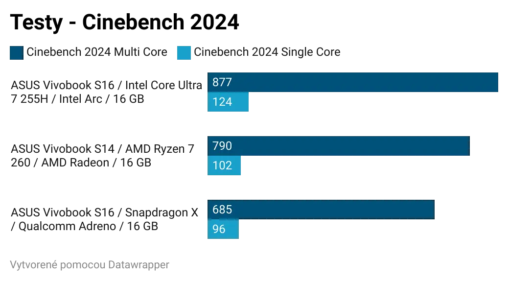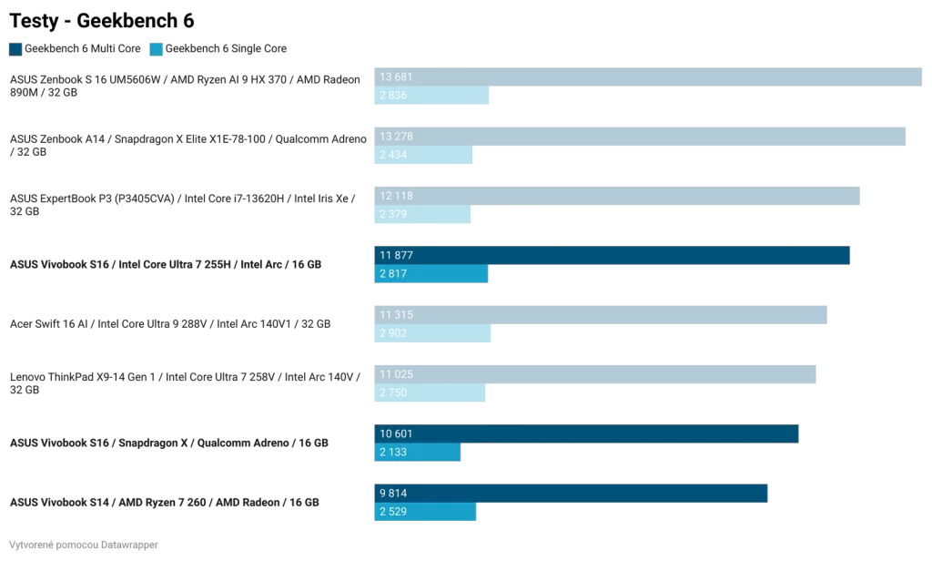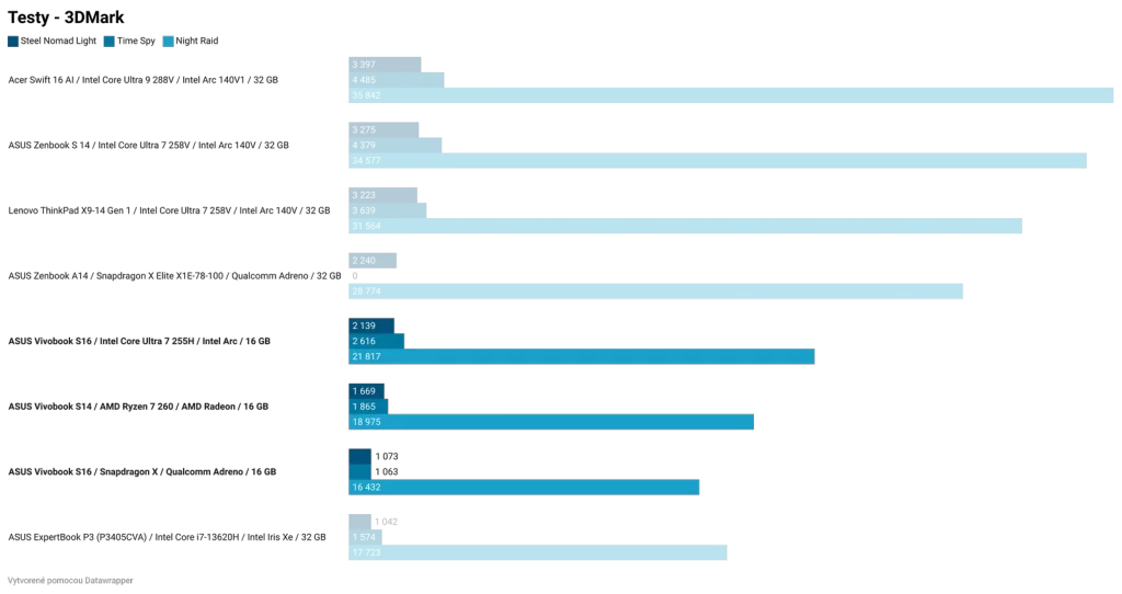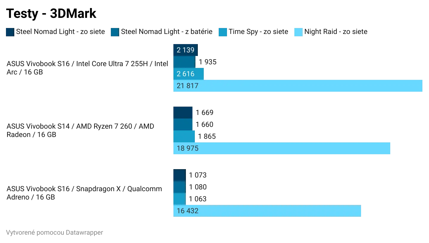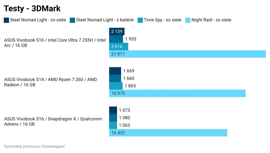Ak by som zosumarizoval porovnanie jednotlivých čipov, bez ohľadu na cenu, najlepší výkon a najlepší grafický výkon z testovanej trojice má Intel Core Ultra 7 255H. Tento čip bude najlepšou voľbou pre používateľov, ktorí chcú tradičný notebook a chcú si na ňom zahrať aj hry. Ak by všetky tri notebooky série Vivobook S14 a S16 mali rovnakú cenu a zároveň rovnakú zvyšnú výbavu, kúpil by som si model s Intel Core Ultra 7 255H.