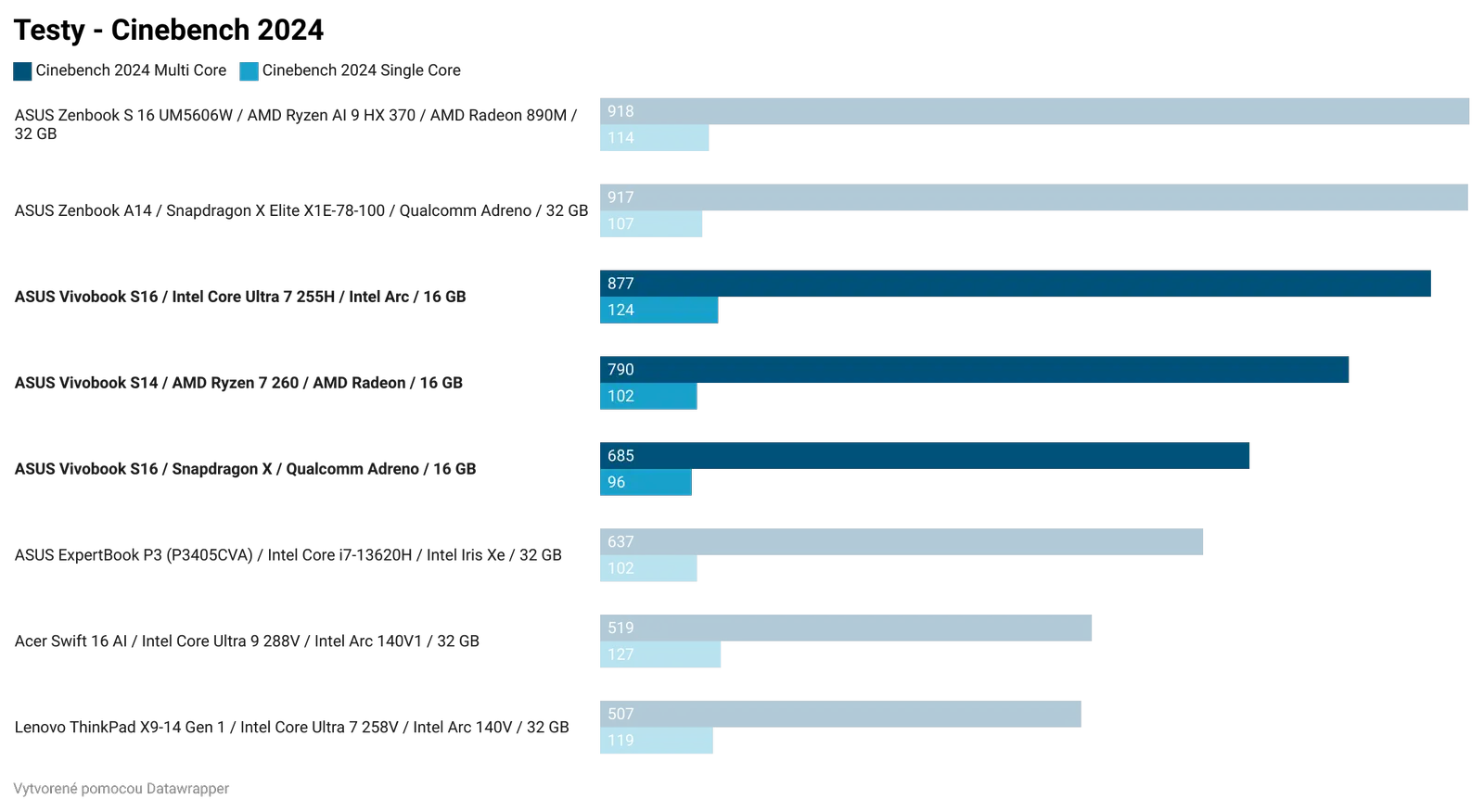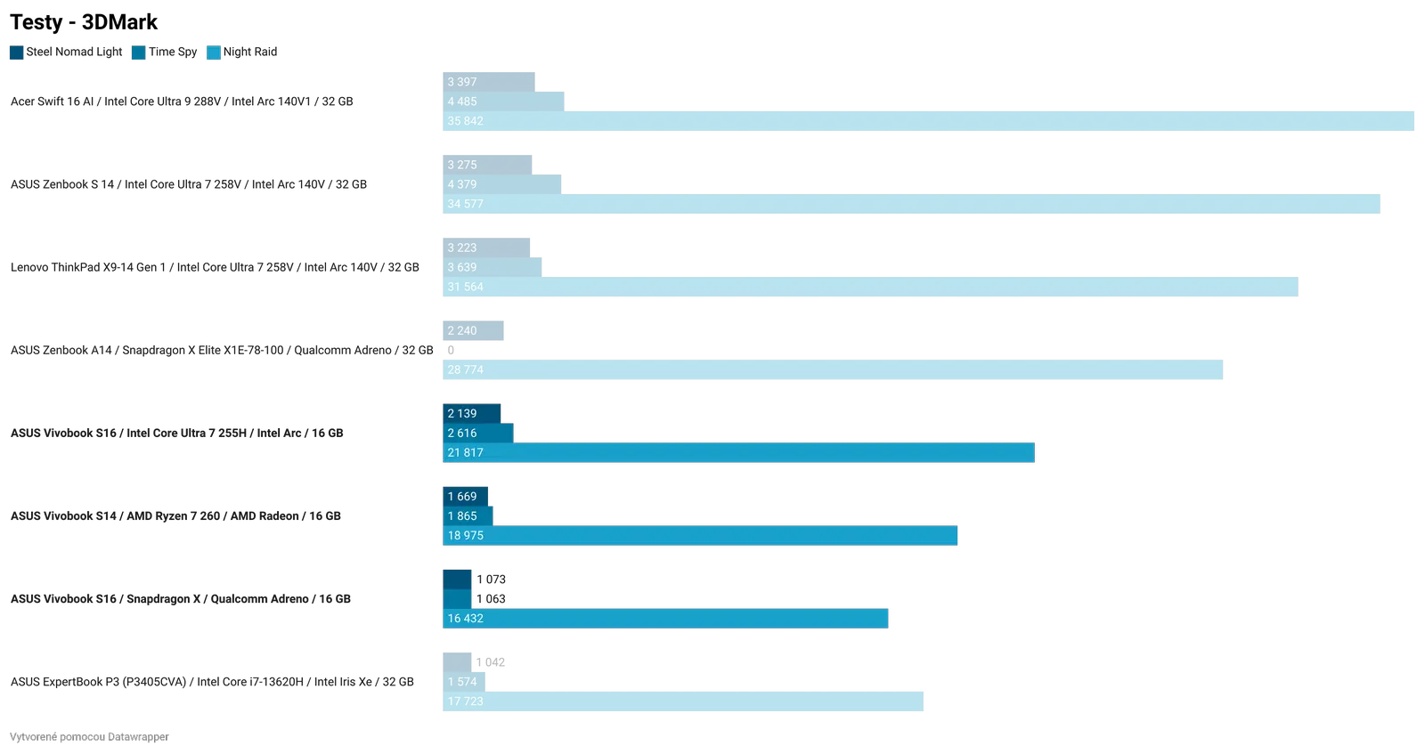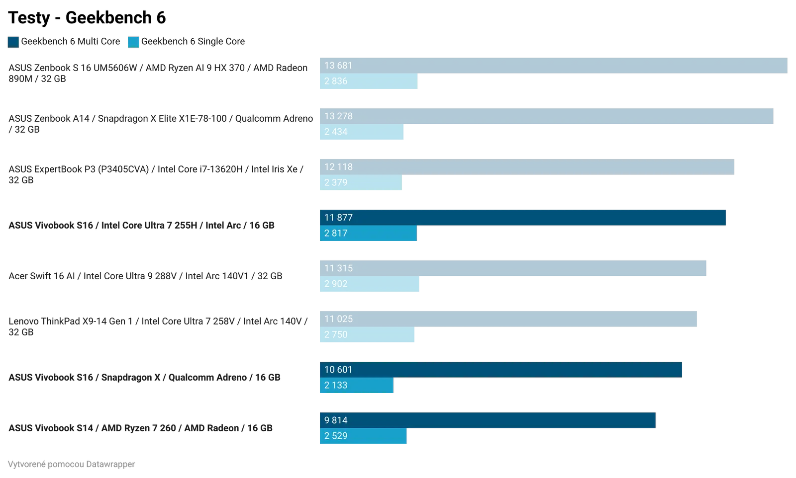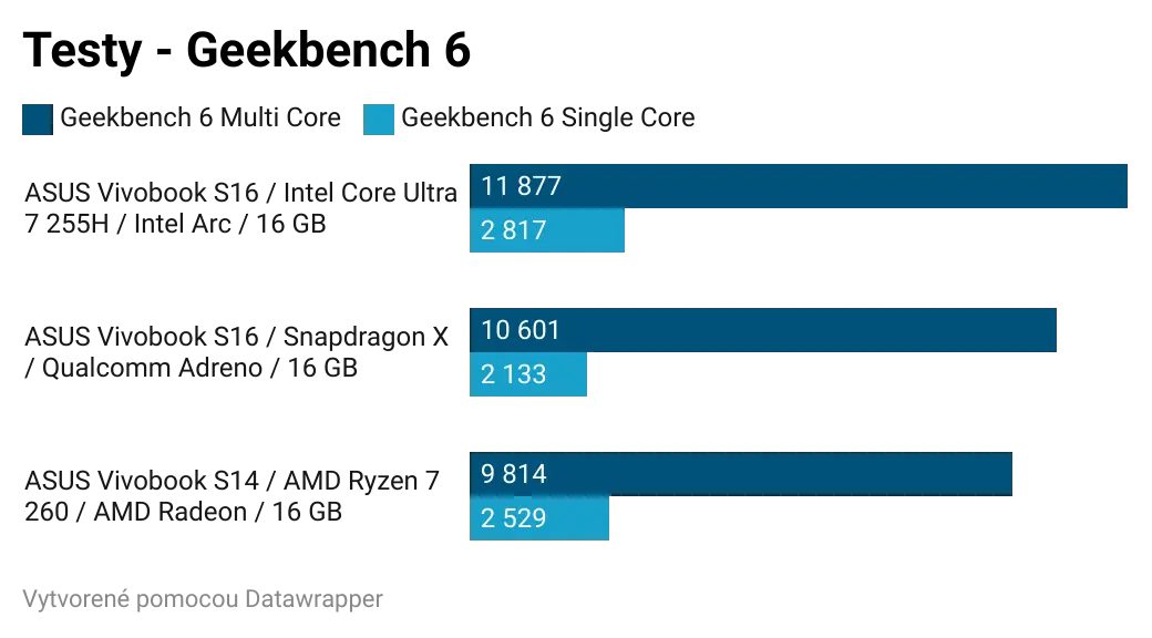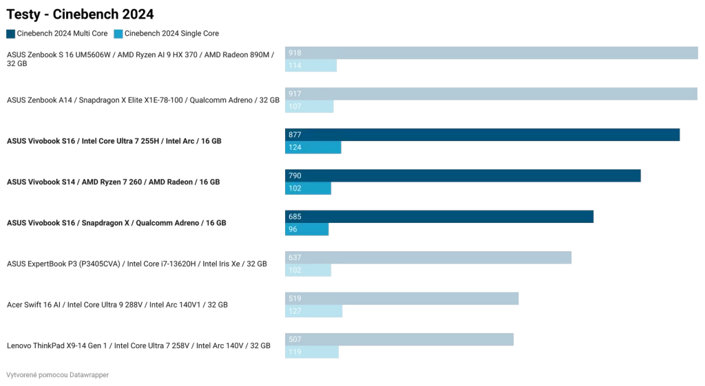 Ak by som zosumarizoval porovnanie jednotlivých čipov, bez ohľadu na cenu, najlepší výkon a najlepší grafický výkon z testovanej trojice má Intel Core Ultra 7 255H. Tento čip bude najlepšou voľbou pre používateľov, ktorí chcú tradičný notebook a chcú si na ňom zahrať aj hry. Ak by všetky tri notebooky série Vivobook S14 a S16 mali rovnakú cenu a zároveň rovnakú zvyšnú výbavu, kúpil by som si model s Intel Core Ultra 7 255H.