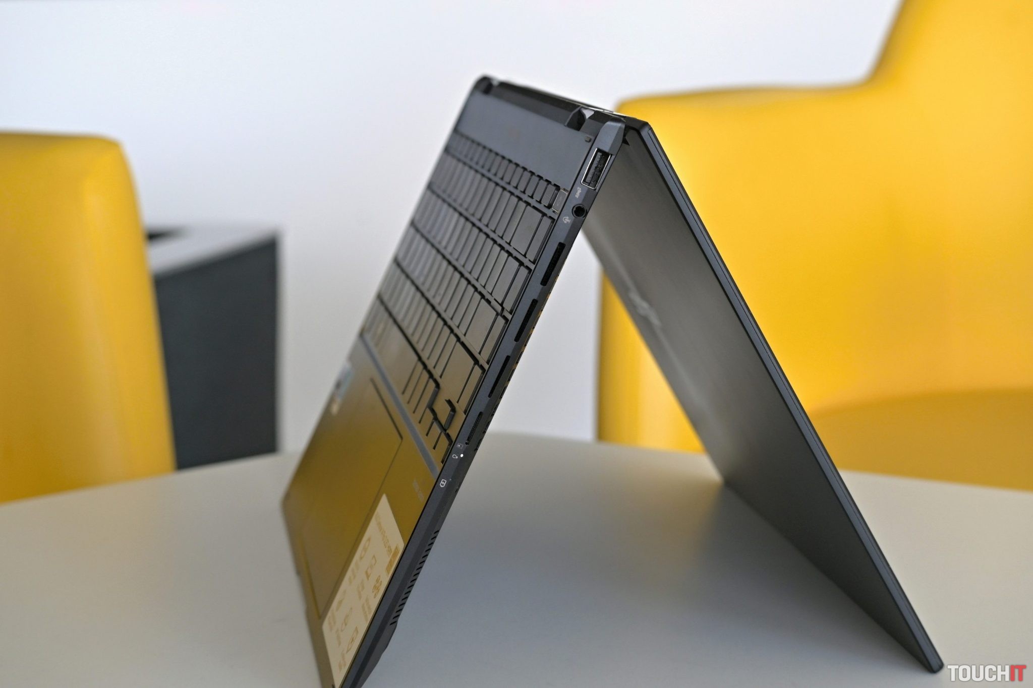 Na to, ako vyzerá a s otočnými pántmi by na pohľad nejavil vysokú dávku odolnosti. Toto je ale pracovný notebook na cesty, aký mnohí hľadajú. Veľký displej s minimálnymi rámikmi a pevné kĺby ako aj kovové telo. Netreba ho ochraňovať ako v rukavičkách a prežije aj horšie zaobchádzanie. Notebook spĺňa vojenský štandard odolnosti MIL-STD-810H. Skrátka, nebojte sa ho prenášať používať, pokojne si na veko niečo položiť. Zvládne aj zaťaženie, čo platí aj pre plnšiu batožinu. Na uchytenie kĺbu je použitý pánt 360° ErgoLift, ktorý zároveň mierne nadvihne notebook po jeho otvorení.
