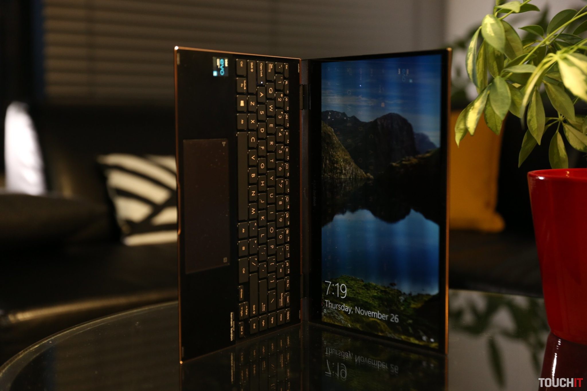 Na klávesnici sa lepšie píše, netreba sa obáva vykrúcania zápästia a celé to pôsobí veľmi prirodzeným dojmom. Keď displej vyklopíte rýchlo, ani si zmeny nevšimnete, no pri pomalom pohybe je naklonenie vidieť. Tento systém je určený aj na to, aby pomohol k aktívnemu chladeniu notebooku.