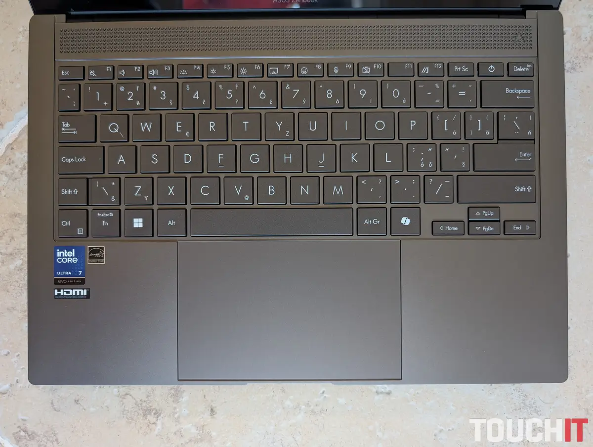 ASUS Zenbook S 14 (UX5406) ponúka podsvietenú klávesnicu a veľký touchpad s inteligentnými gestami pre rýchlu zmenu jasu a hlasitosti. Nad klávesnicou sa nachádza mriežka, ktorá pozostáva z 2715 chladiacich otvorov. Optimalizuje prúdenie vzduchu a odvod tepla pre dosiahnutie a udržanie maximálneho možného výkonu.