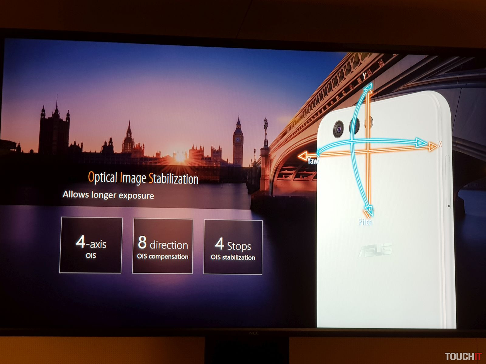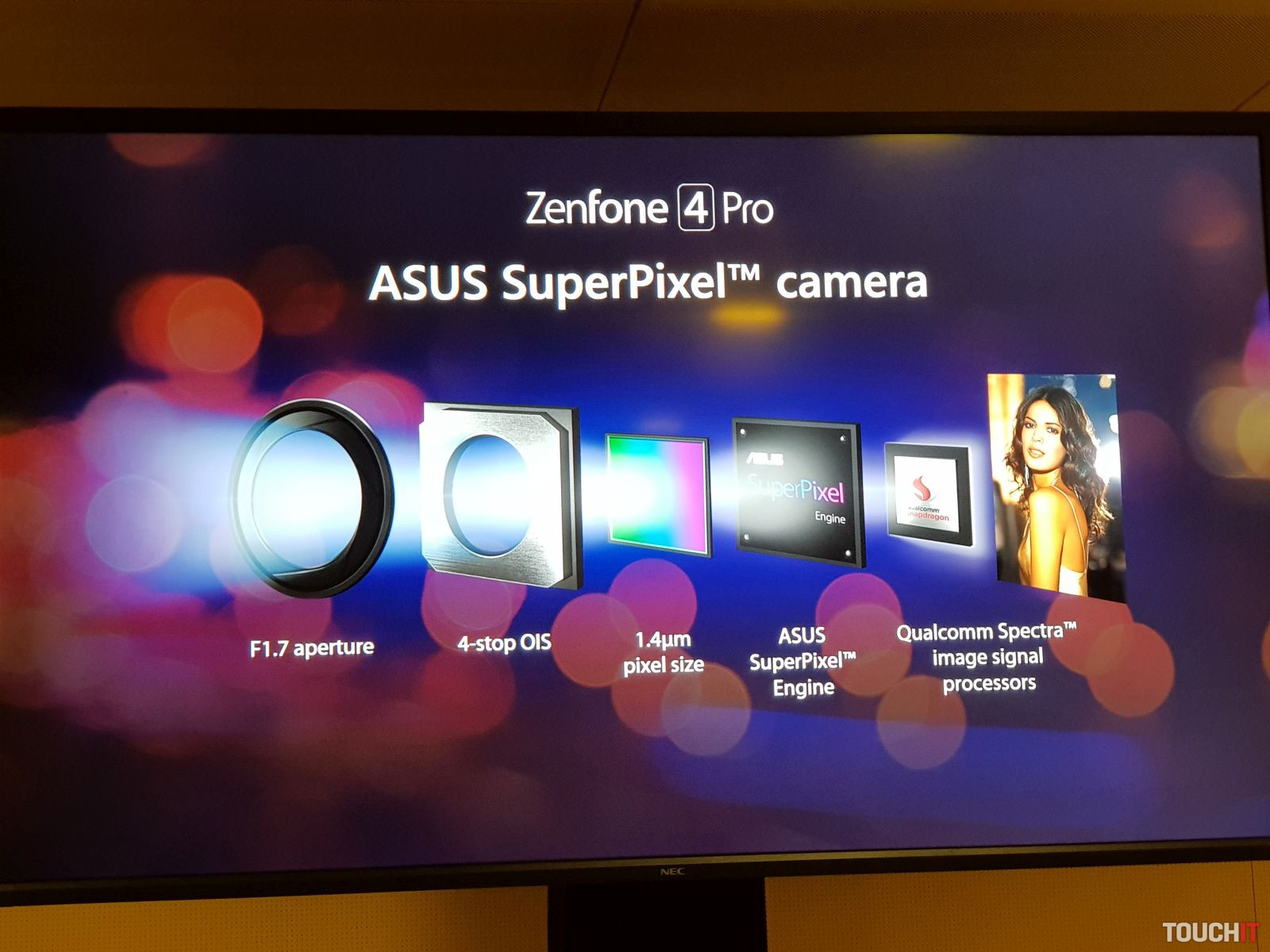 ZenFone 4 Pros 5,5-palcovým AMOLED displejom ponúka procesor Snapdragon 835, ktorý nájdete aj v konkurenčných vlajkových lodiach a podporuje prenosové rýchlosti mobilného internetu až do 1 Gbps. Operačná pamäť má kapacitu 6 GB RAM. Telefón chce zaujať najmä duálnym fotoaparátom, ktorého základom je 12 Mpx senzor Sony IMX362, svetelnosťou f/1.7 a optickou stabilizáciou. Dopĺňa ho teleobjektív s rozlíšením 16 Mpx, takže novinka ponúka 2-násobný optický a 10-násobný celkový zoom a vďaka technológii ASUS SuperPixel Engine sľubuje až 8-násobne viac zachyteného svetla. Nechýba snímač odtlačkov prstov a NFC. Kompletné technické špecifikácie. Telefón príde na trh v novembri s cenovkou 849 eur.