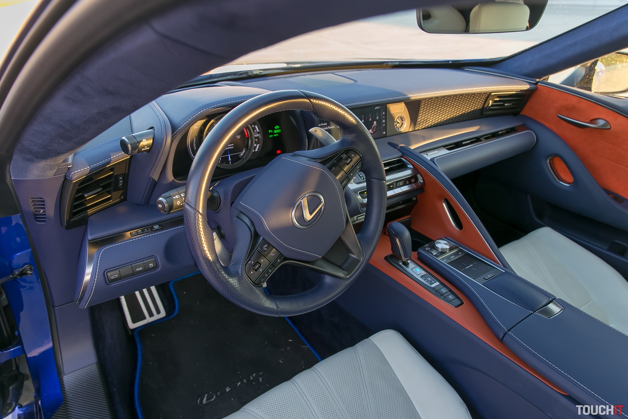 Dobre, tak ako začať? Určite od prednej masky, to je niečo, čo musel vymyslieť Japonec a jeho montáž musí byť druh japonského umenia. Následne si všimnete svalnaté zadné kolesá na 21-palcových diskoch. A potom full-LED svietenie. Všade, kde sa len pozriete, nájdete písmeno L. Nájdete aj označenie toho, že ide o hybrid, ktorý kombinuje 3-litrový benzínový motor s elektromotormi. Celkový dojem podčiarkujú otvory v zadnej časti pri kolesách. Skôr je to síce na efekt, ale teda poriadny. A čo vo vnútri? Pre Lexus je charakteristické dotykové ovládanie so spätnou väzbou. To sa podľa nás k pravému športiaku nehodí, skôr by to mali byť tlačidlá na rýchlu voľbu. LC 500h je podľa nás viac o luxuse ako o športe a tu má dotykové ovládanie svoje miesto. Rovnako je to aj s pohodlím počas jazdy – na fakt tvrdé športové odruženie zabudnite, máte tu samozrejme klimatizáciu, ventiláciu na kožených sedadlách a tiež obrovský odkladací priestor medzi prednými sedadlami. Dve miesta vzadu sú naozaj len pre prípad núdze. Síce sme sa tam dostali, ale najlepší zážitok bolo vyliezanie z auta von. Radiaca páka je maličká, na spôsob manuálneho radenia si treba trochu zvyknúť. S automatikou nič neriešite, len si vyberiete štýl jazdy. Ak budete mať možnosť, určite nevynechajte Sport +, vtedy sa toto auto mení z baránka na šelmu. A prejavuje sa to aj na spotrebe – z povedzme pohodových 9,2 l/100 km môžete skončiť pri 15 l/100 km. Ale za ten zážitok to stojí a zvuk motora treba počuť. Veľmi sa nám páčili analógové hodiny na prednom paneli, rovnako ako veľký displej. Asi najúžasnejší je pohyblivý otáčkomer. To stojí naozaj za to, nechali sme ho pohybovať tak 10 krát za sebou. Veľmi efektné, toto inde nenájdete. Celkovo sa LC 500h podobá skôr na nejaký koncepčný model ako na sériovo vyrábané auto. Ten, kto si ho kúpi, dáva vedieť o svojej výnimočnosti. Svojich známych ohúrite už len tým, ako sa na LC 500h otvárajú kľučky, na maličký kufor vzadu zabudnete, užijete si automatické prepínanie diaľkové/tlmené svetlá a pohľad z cúvacej kamery. Cena toho auta v testovanej verzii je 116 000 eur.Podobné články