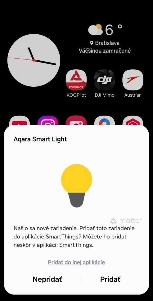 Pokiaľ máte nasadenú vyššie spomenutú kameru, môžete využiť jej zabudovaný hub na použitie iných zariadení. My sme použili LED žiarovku s označením AQARA LED Bulb T2 (E27, RGB CCT) (LB-L02D) – Zigbee a Thread RGB+CCT.